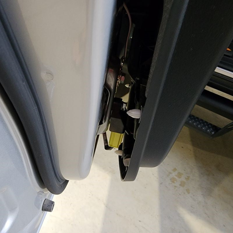 Finally, unplug the white connector towards the front of the door panel as it is the last connector that is standing in the way of removing the door panel completely from the door frame. This will be the connector we are going to work with for the Door Bowl Lights.
