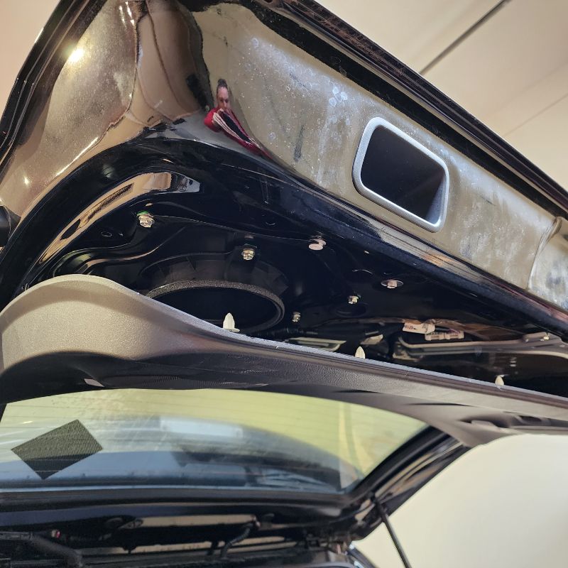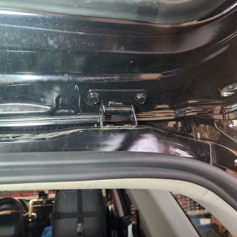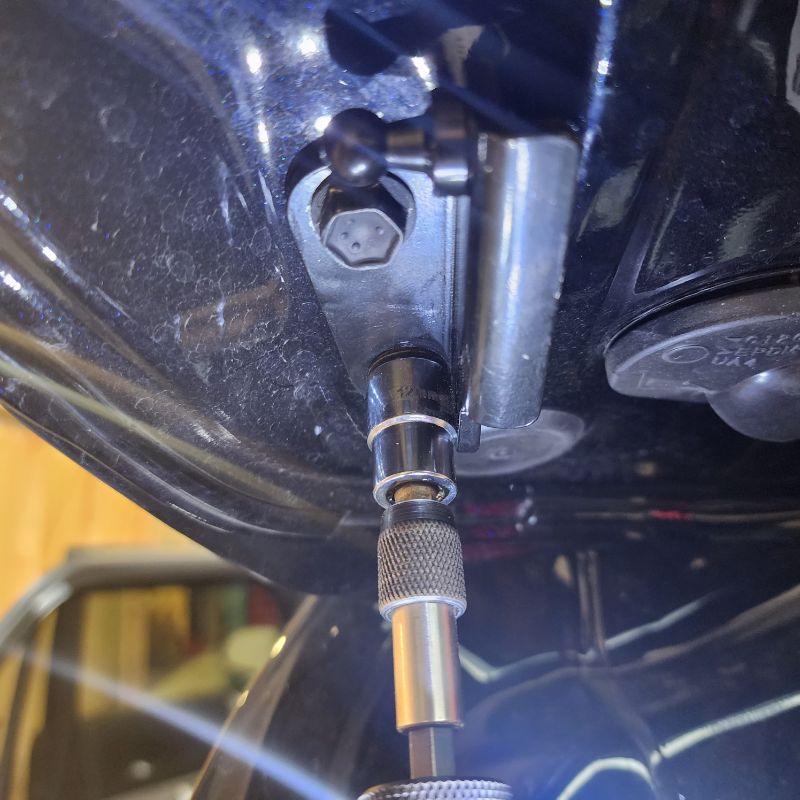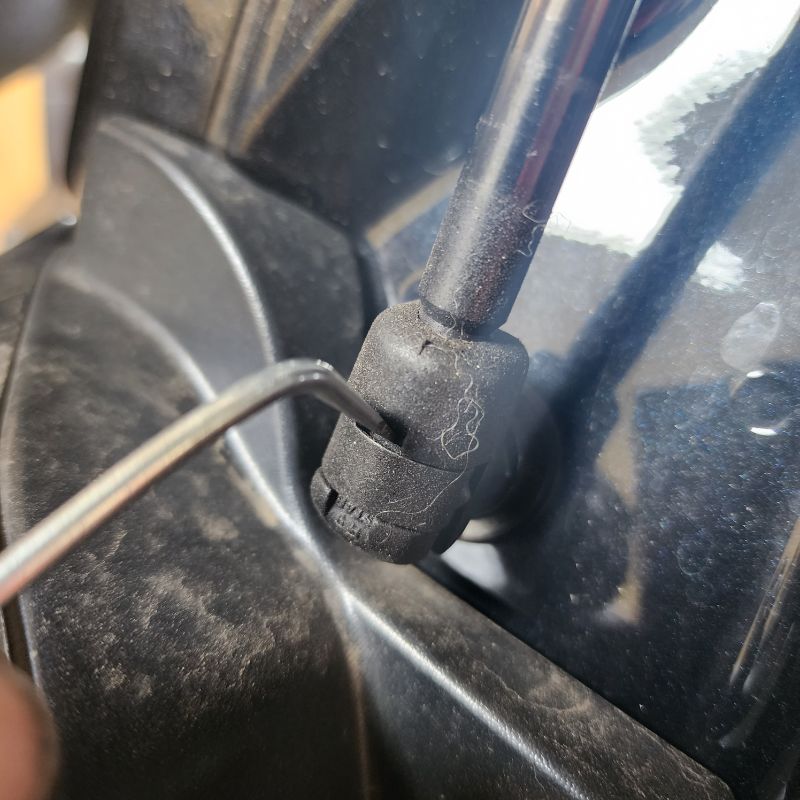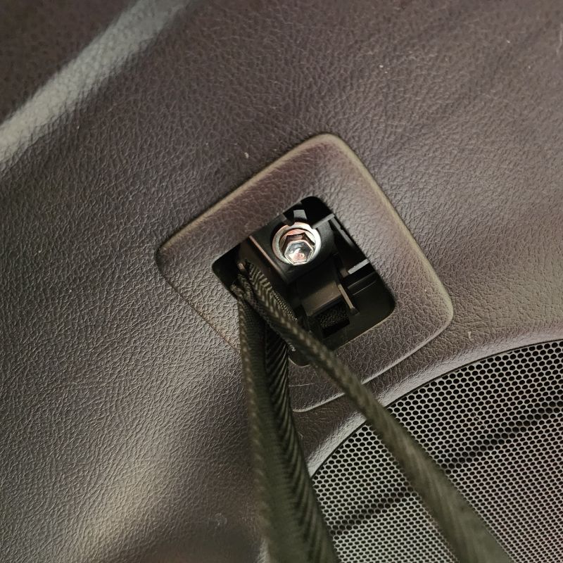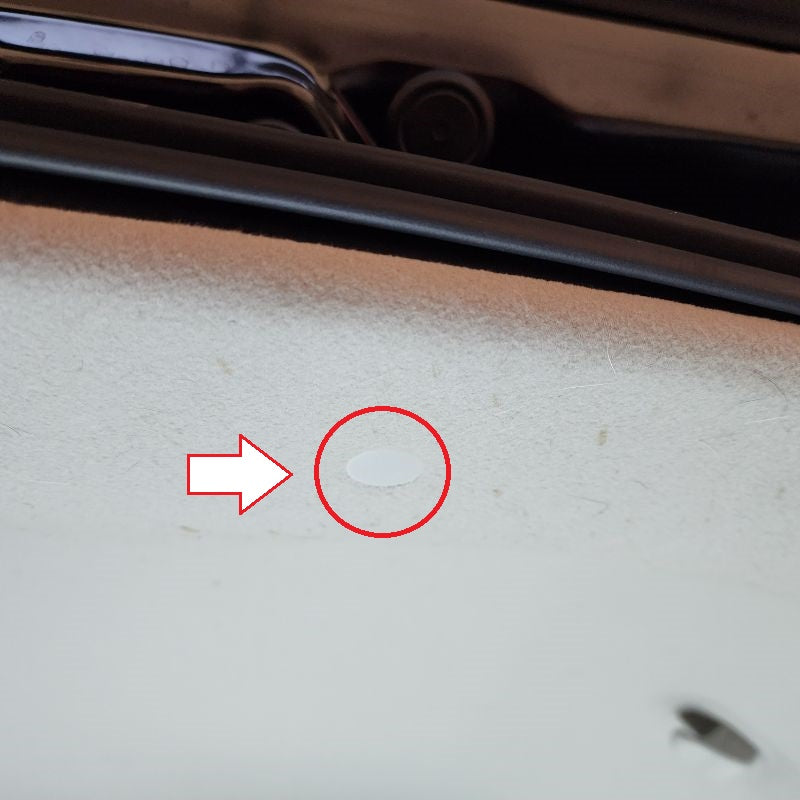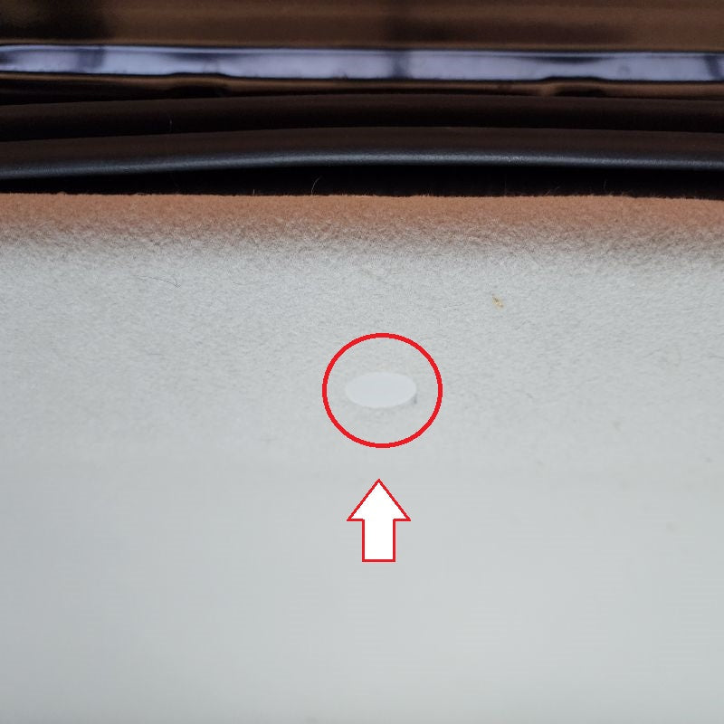 Using your plastic trim removal tool, locate the liftgate strap and remove the square panel cover. Once this is removed, you will see the hidden 10mm Bolt. Use your 10mm socket to remove.