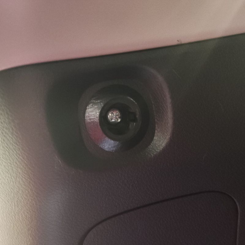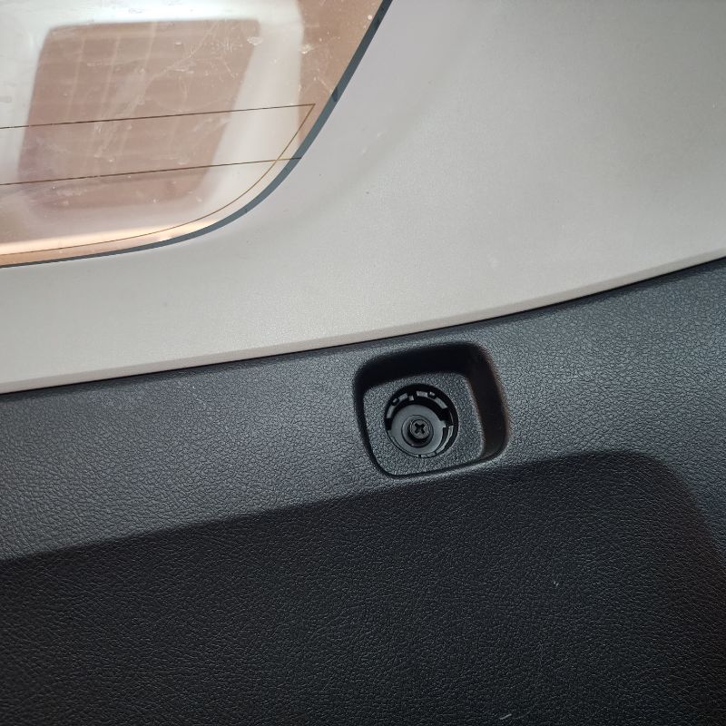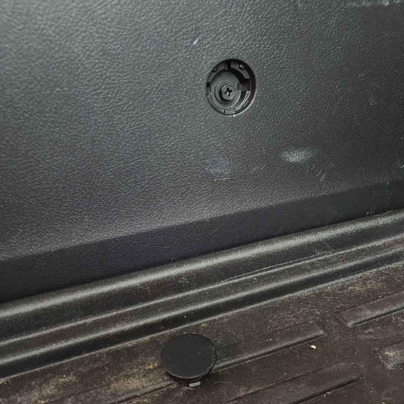 Start by turning the factory cargo tie-down 90 degrees and then pull it straight out. You will now see a hidden screw. Use a phillips head screwdriver hand tool and remove.