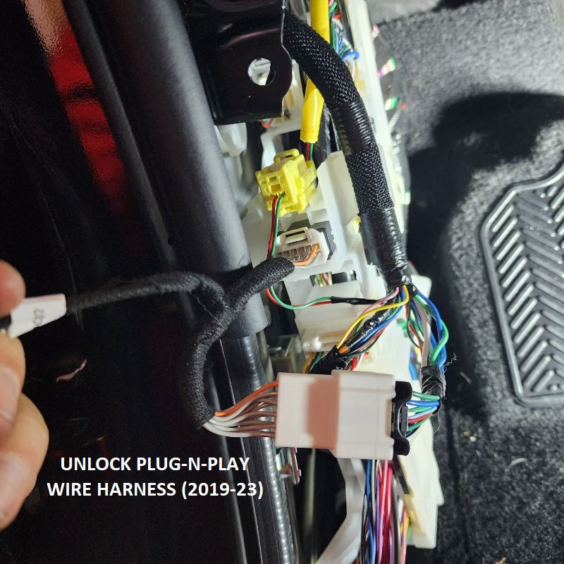 Next, connect the Unlock Plug-N-Play Wire Harness that pertains to your vehicle. There is one connected and an extra harness included. Look below for images on placement. Following that, you will need to locate a constant 12V+ source in your dash fuse panel. A good one to use is P/SEAT F/L fuse.