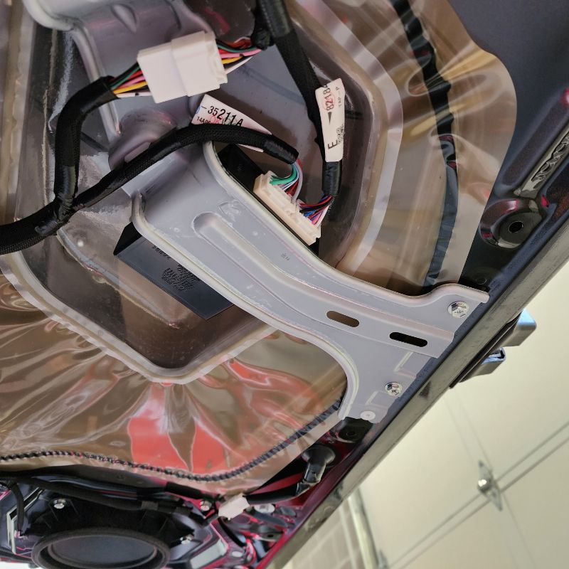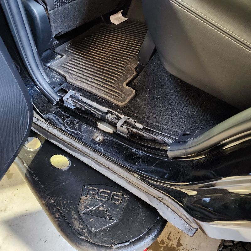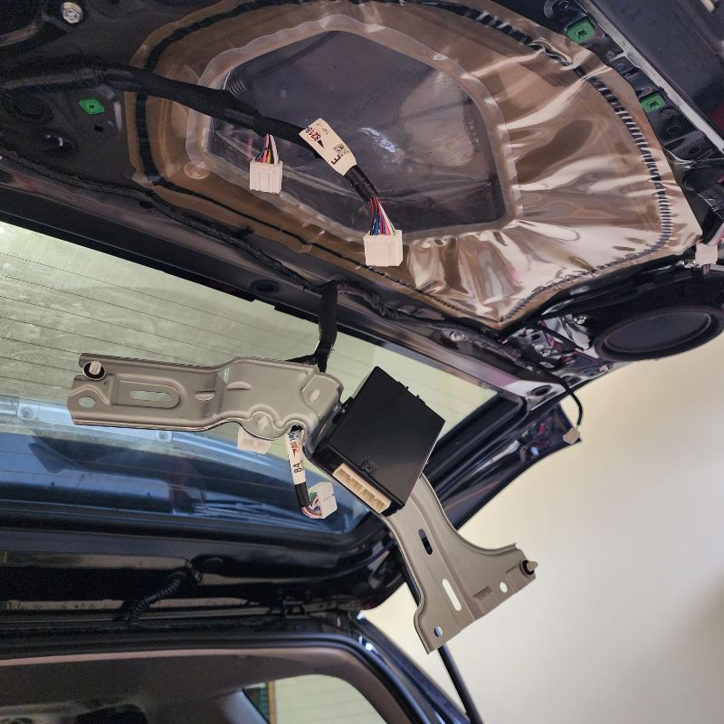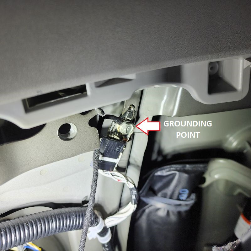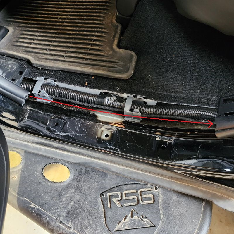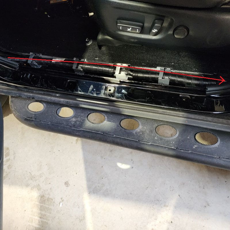 Route New Wire Harness to the rear of the vehicle. You will see the most common path is removing the driver front and driver rear passenger door sill panels to the rear driver's side left corner / wheel well interior trim panel. Here you will connect the grounding points and mount your control box with 3M.