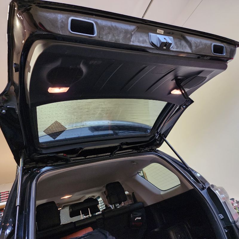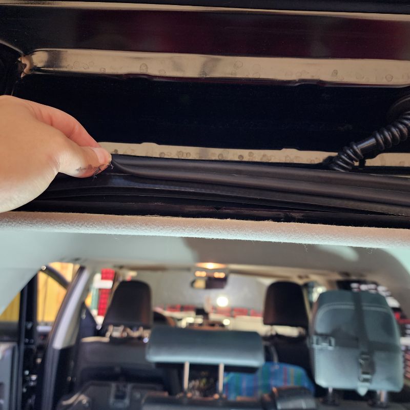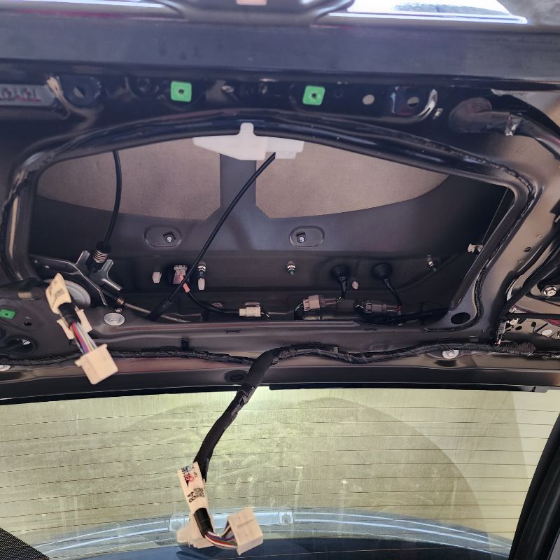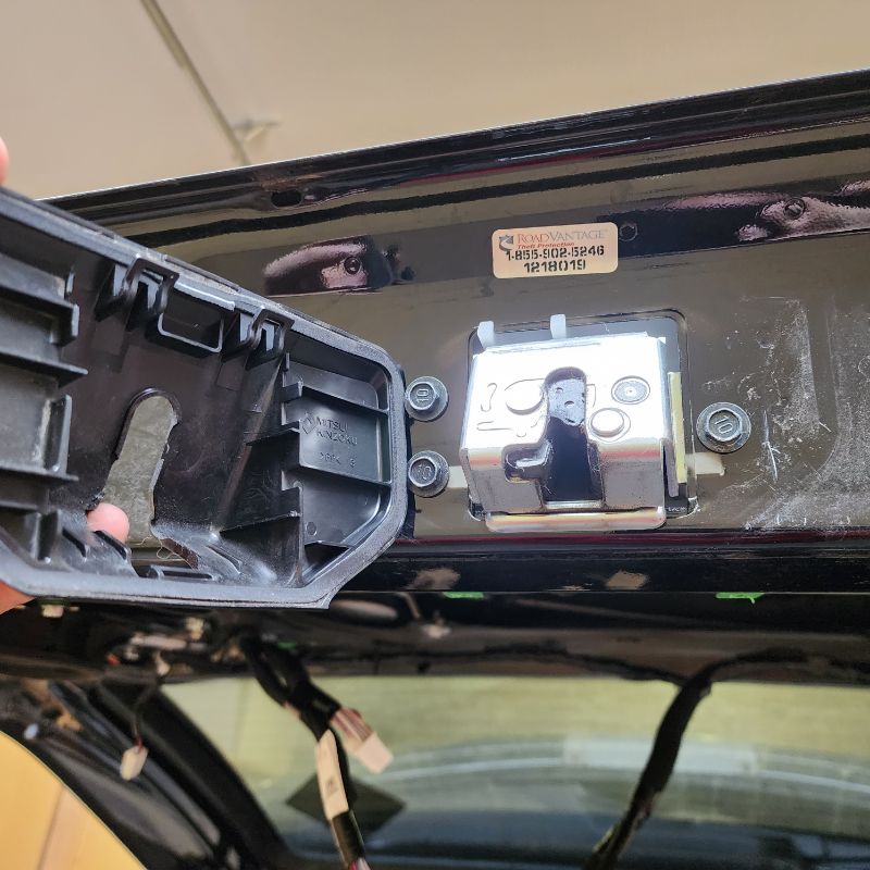 Finally, once those two wire harnesses are disconnected, you can push the panel forward (towards the inside of the cab) to remove from the top edge where the window seal is located. Make note of how you removed this panel for when you re-install it at the end. Place the liftgate interior panel out of the way as you won't replace it until the very end of this install with the other interior panels you removed in Step 1 & 2.