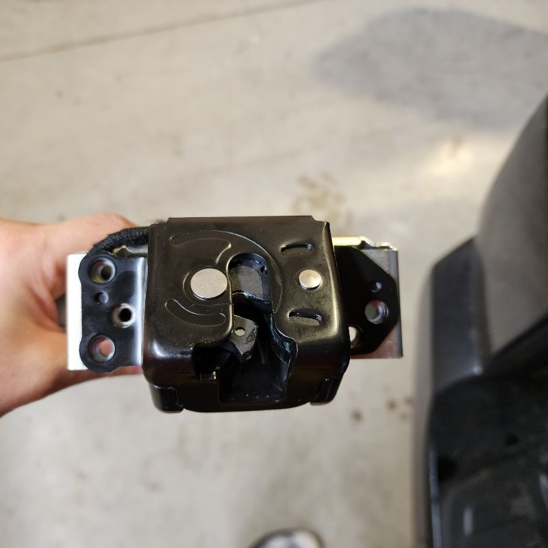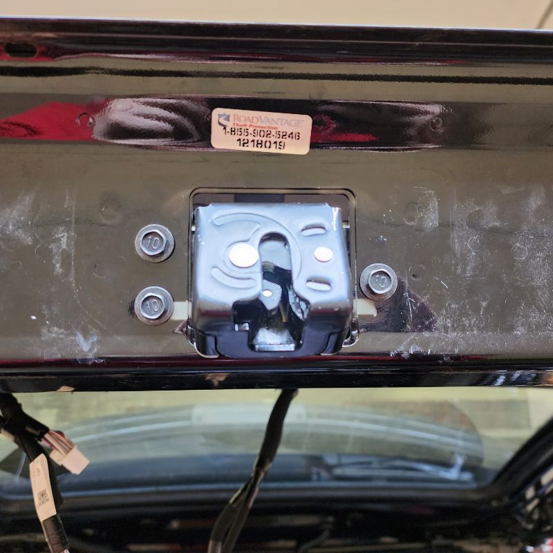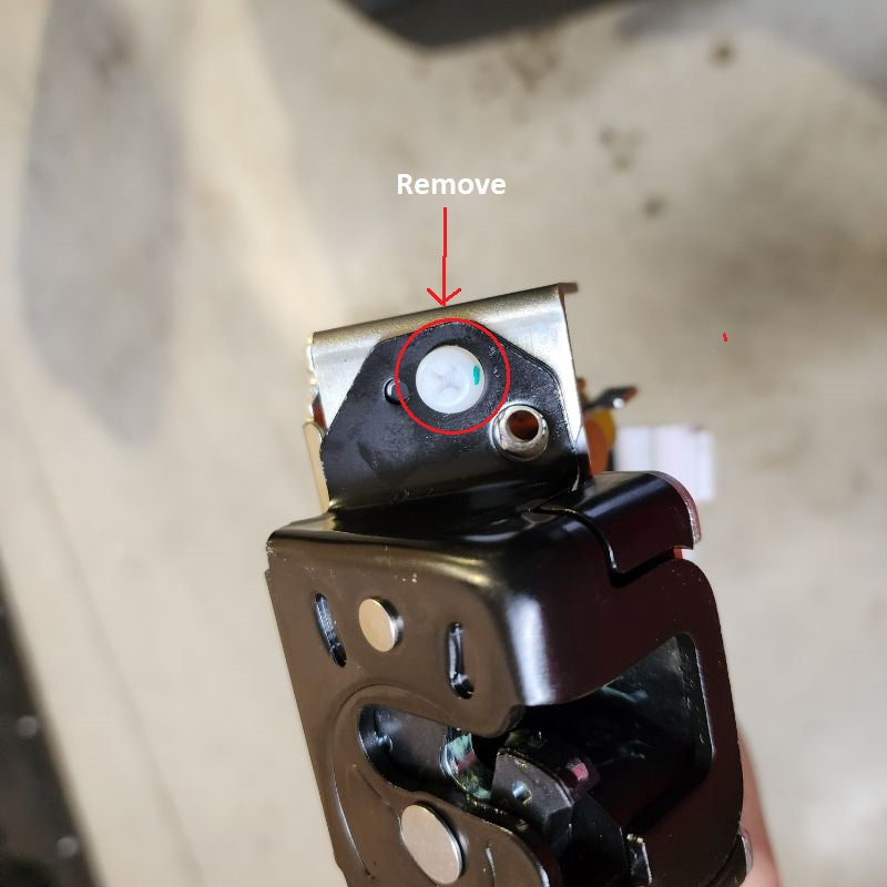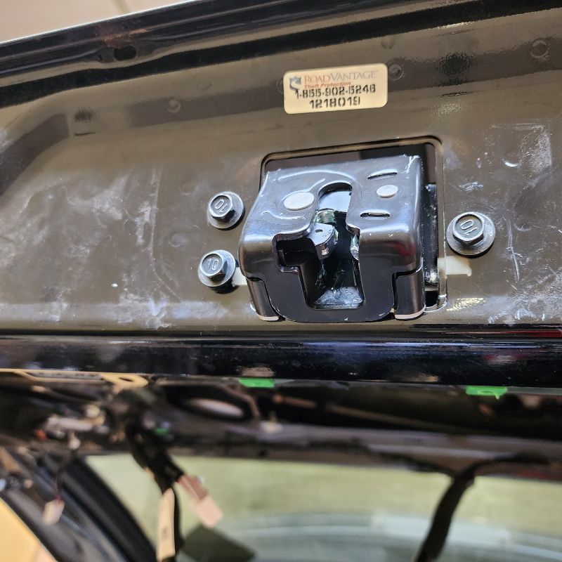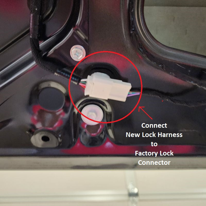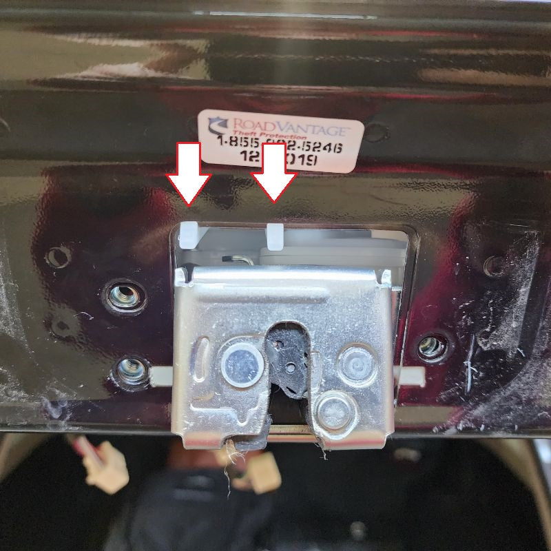 Using a 10mm socket or wrench, remove the three black factory bolts. In order to push the locking latch inward, there are two white tabs on the top. Press these down while pushing in towards the middle of the tailgate. The last thing you will need to do, is go on the inside of the latch and release the plastic white retainer holding it secure at the top. Go ahead and disconnect the latch factory harness and remove it from the tailgate. You can reuse the black grommet from the factory wire harness if you would like with the new latch.