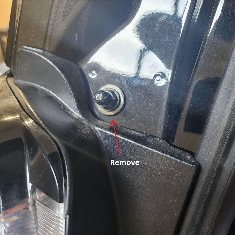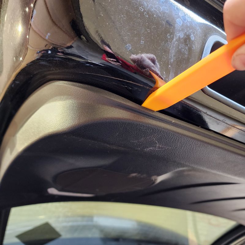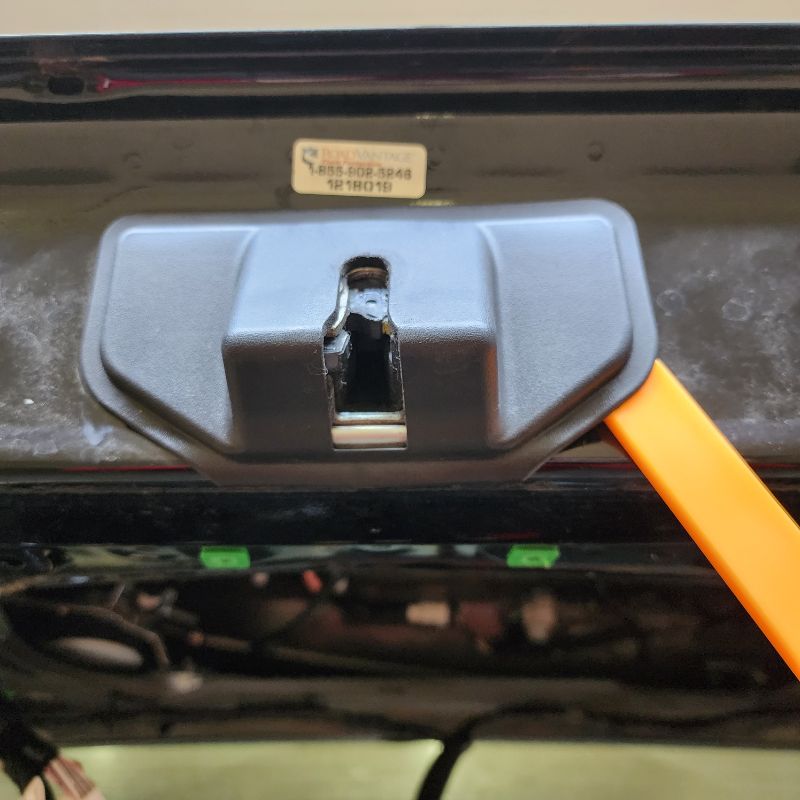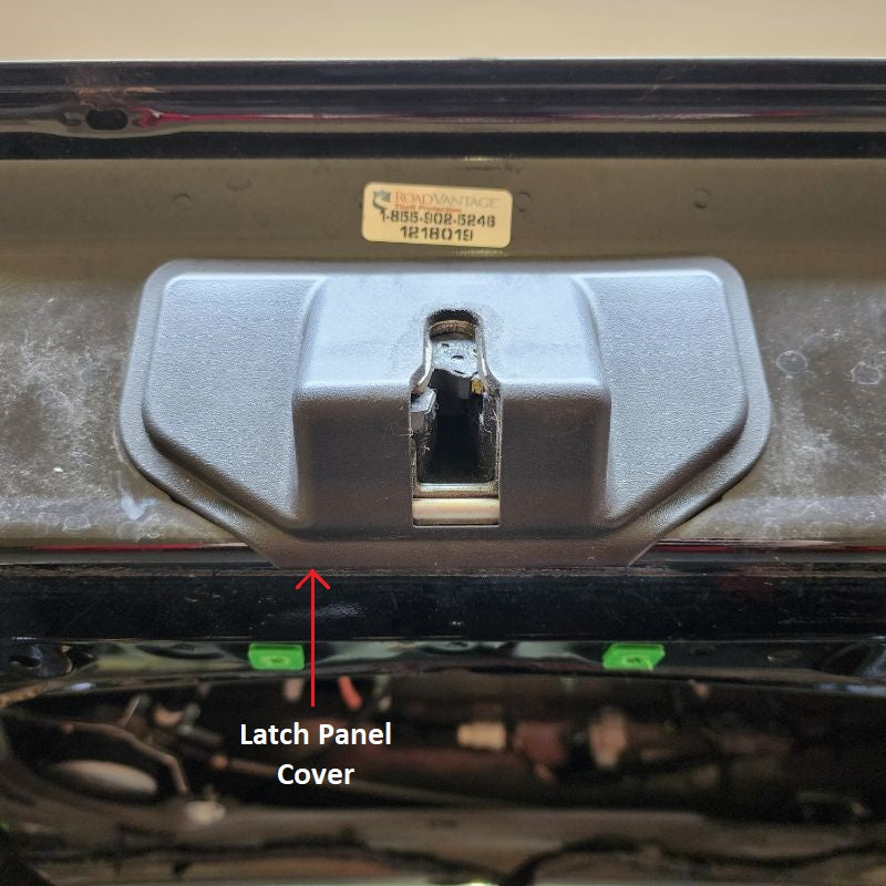 Last, remove the Factory Latch Panel Cover. This is just held on with some glue so a plastic trim removal tool should work. To reinstall, it is recommended to use adhesion promoter with a C-Clamp to hold it in place.