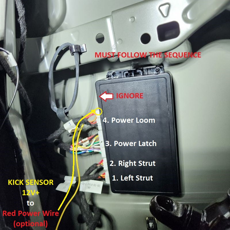 Lastly, you will need to follow the EXACT sequence numbered to operate. If you do not follow inserting the power strut plugs #1 & #2, then the power latch plug #3, and finally the power plug #4 last, you may find that the tailgate will not close.