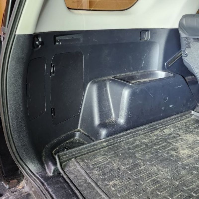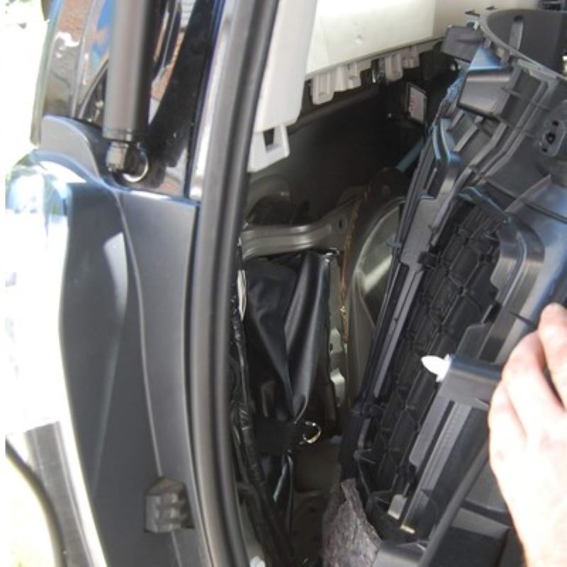 Now, move to the back of the vehicle and start removing the rear driver's side left corner / wheel well interior trim panel.