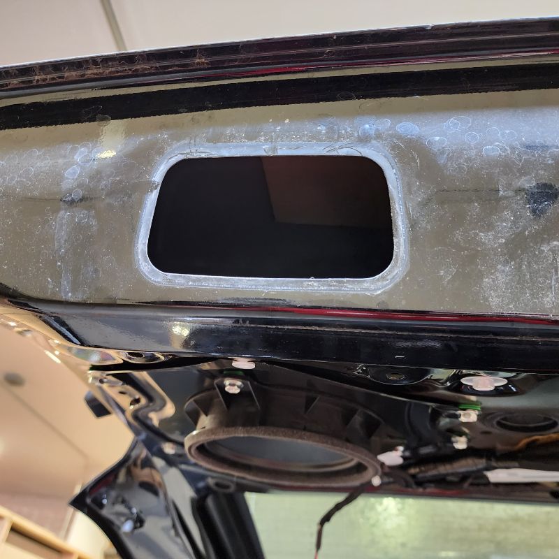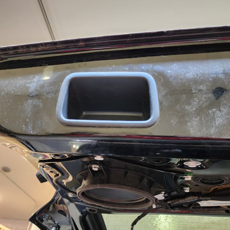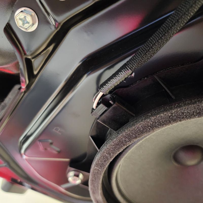 Next, go ahead and remove the two speakers in the tailgate with either a 10mm or Phillips Screwdriver. This will allow more access while routing the new wire harness through the liftgate.