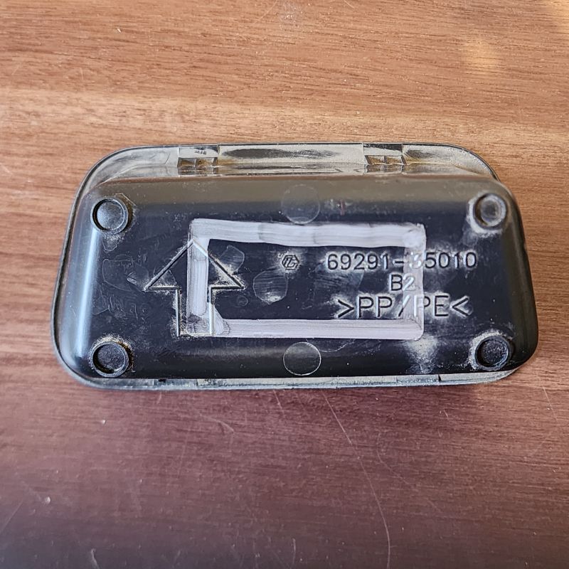 Using a Dremel or something similar, cut a rectangle the size of the New Rear Push Button in the factory door pull handle to install the New Rear Push Button. Make sure you trace the backside of the push button so it will lock in place with the two side tabs. Restore the factory plastic door panel with push button back on the tailgate when finished.