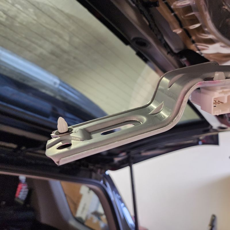 Here you will need to disconnect three factory white connectors, three 10mm bolts, and two white retainer fasteners. To remove the white retainer fasteners, it makes it easy if you have a Door Panel Remover Tool. Once you have disconnected everything holding the bracket to the tailgate, go ahead and set it aside for later.