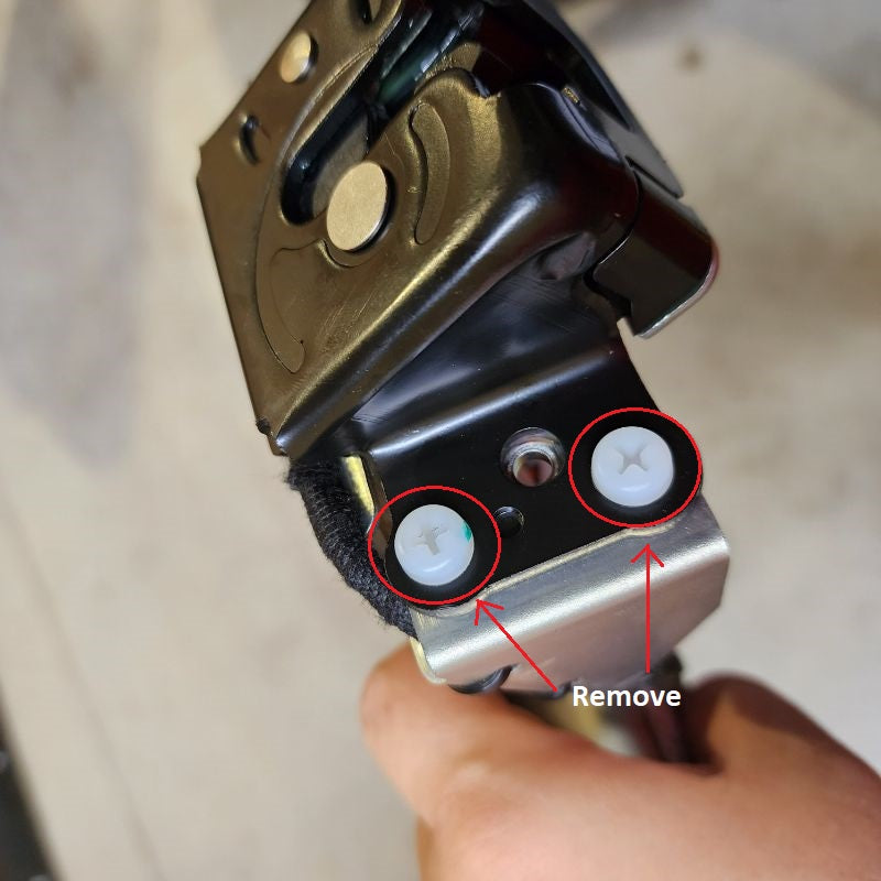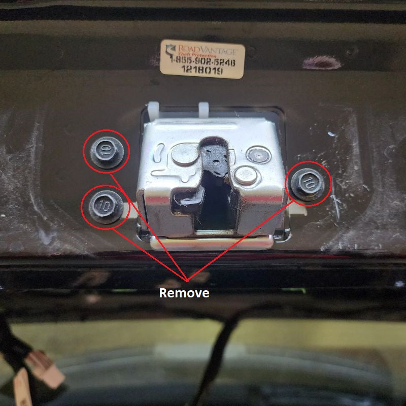 Next, you will see three white plastic screws on your New Tailgate Latch. Remove those with a Philips Screwdriver. Now you are ready to install the New Black Tailgate Locking Latch. Do so in the same way as you removed the factory latch, just reverse.