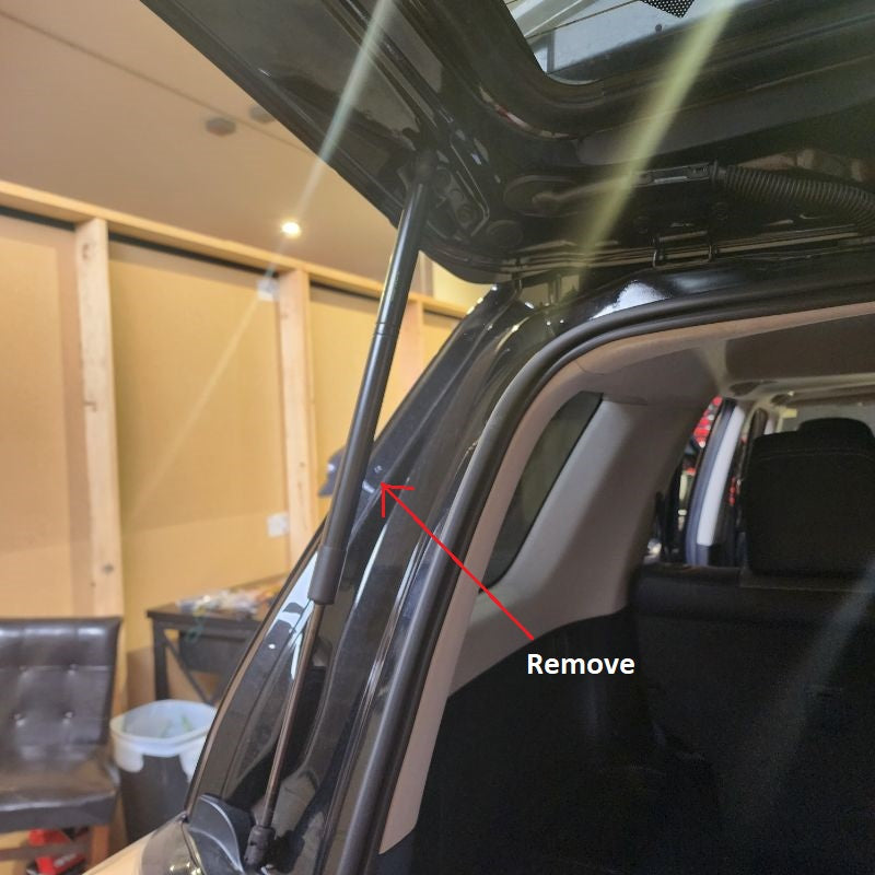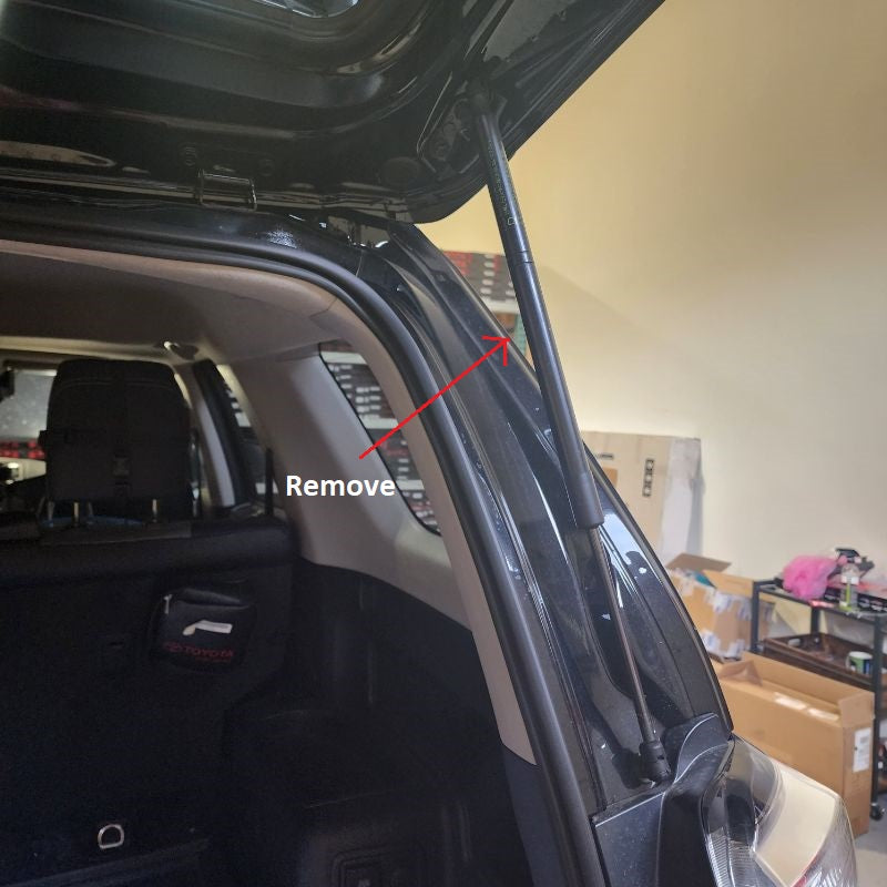 Loosen factory gas spring clips by using a small screwdriver, pull the gas spring out gently. You will need assistance to HOLD THE DOOR when removing the gas springs.