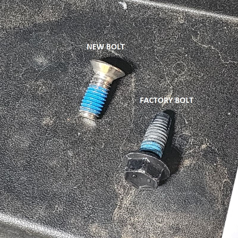 Use the new top door brackets included in package to replace the factory ones. You can use the original screws, or the new ones included. It is personal preference. You will need a 12mm.