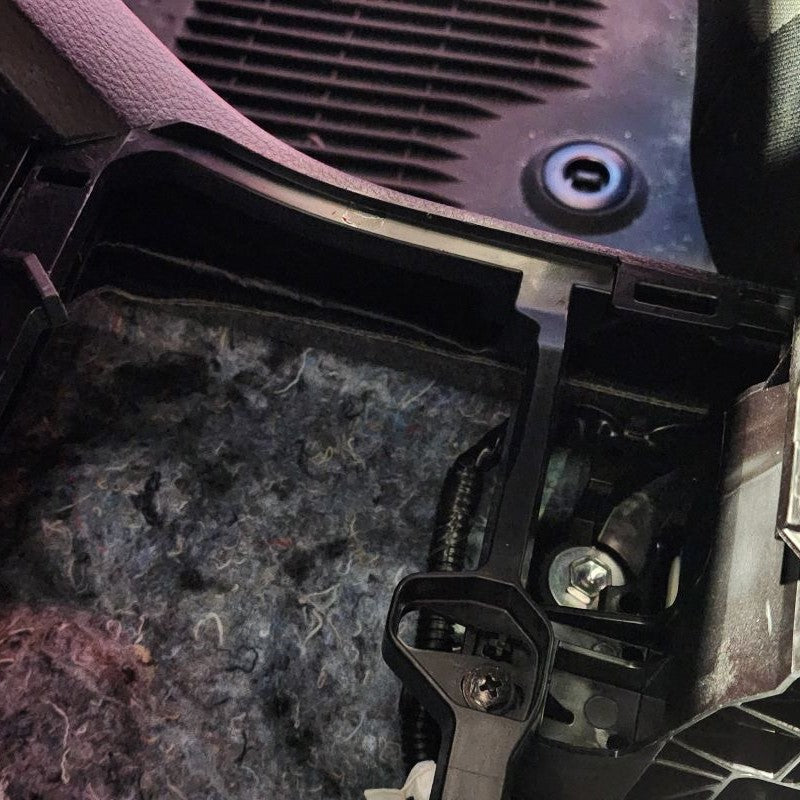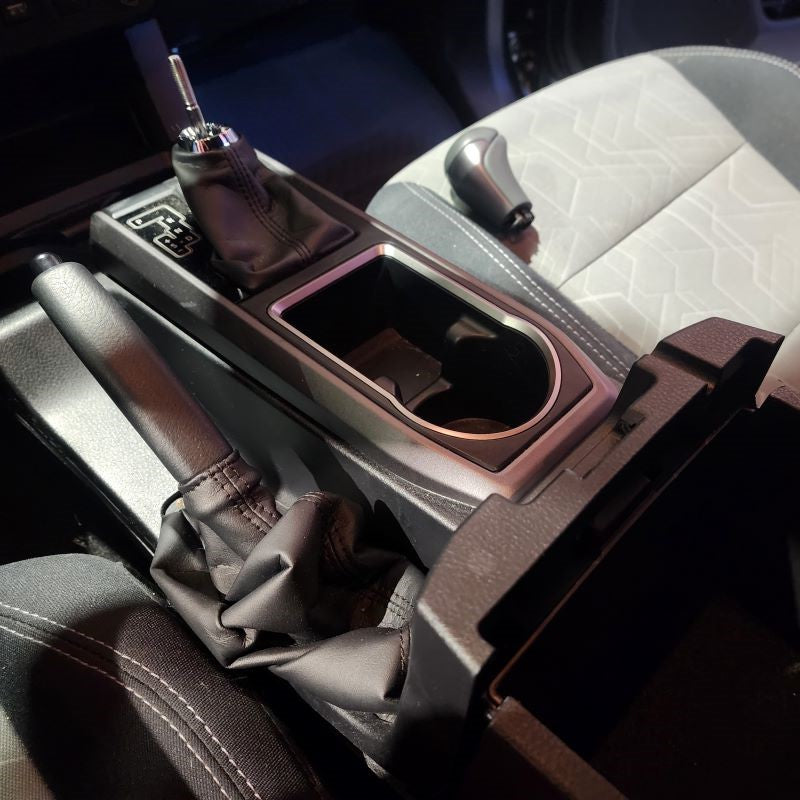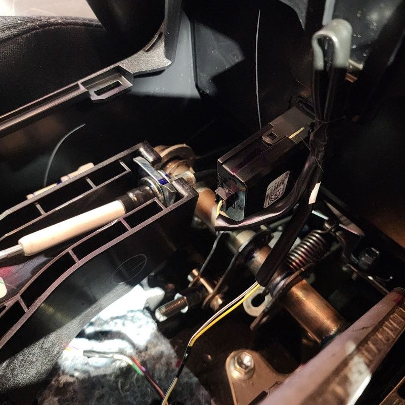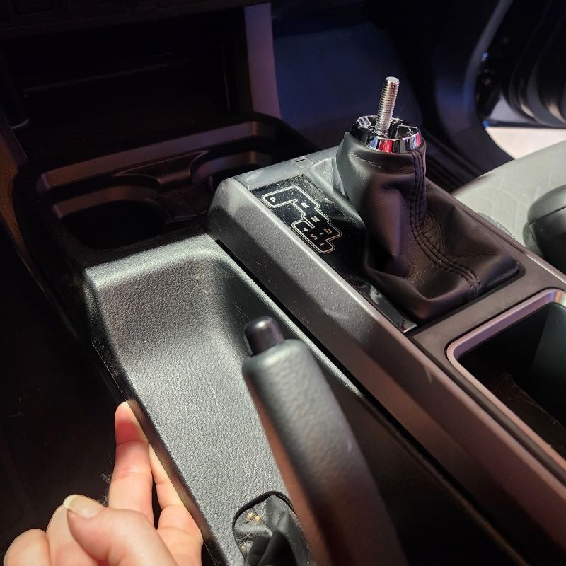 As you slowly lower the center console shift cover, re-connect the factory white connector you discconted in Step 2 and then run the New Wire Harness through the top of the Shift Knob opening. Once you have ahold of it, go ahead and press the center console down slowly making sure that all of the clips pop back into place and do not break or come off.