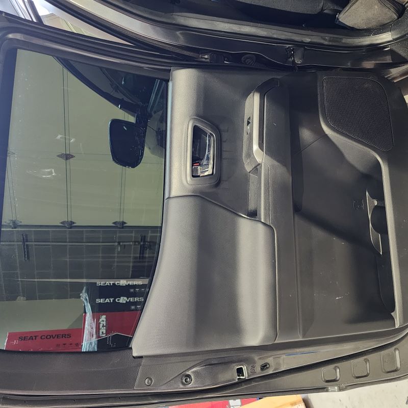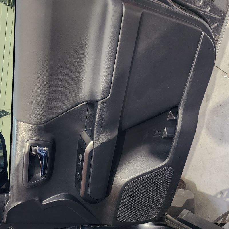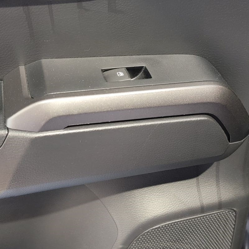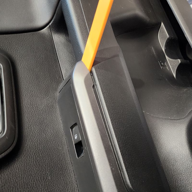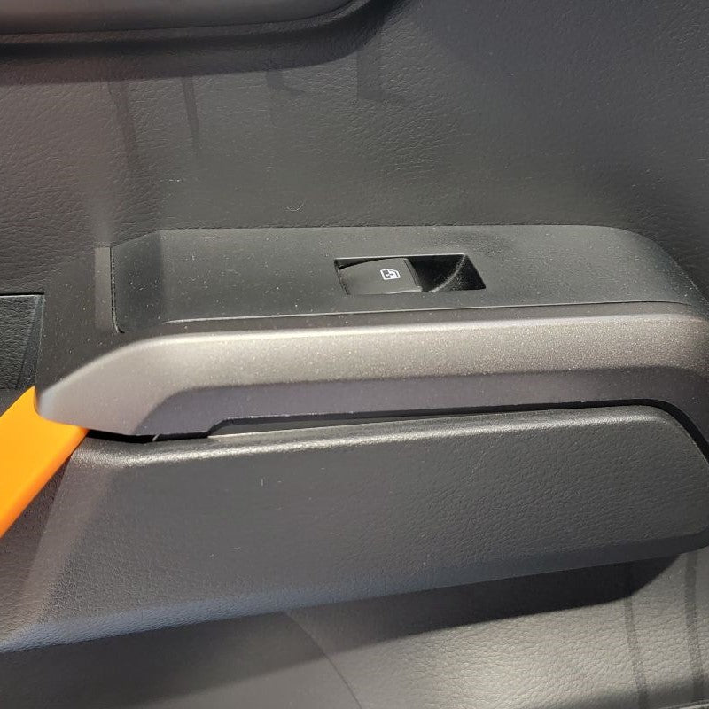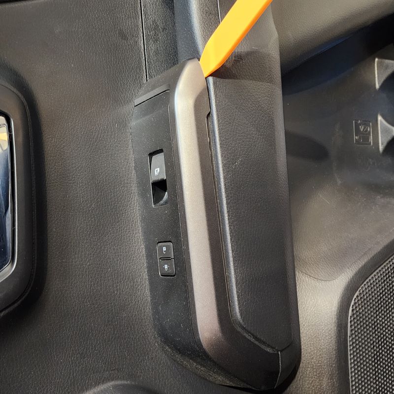 Using a Door Panel Remover or Trim Removal Tool remove your right rear passenger window switch trim panel from the door. Start at one end and then continue to release the panel from its locking tabs from underneath. Once you get one end up, you can use your hand to pull up on the rest of the panel.