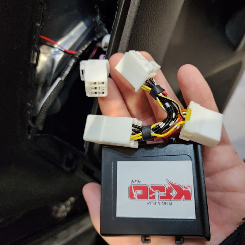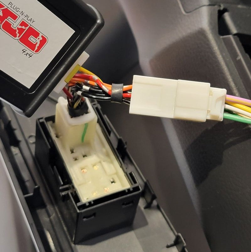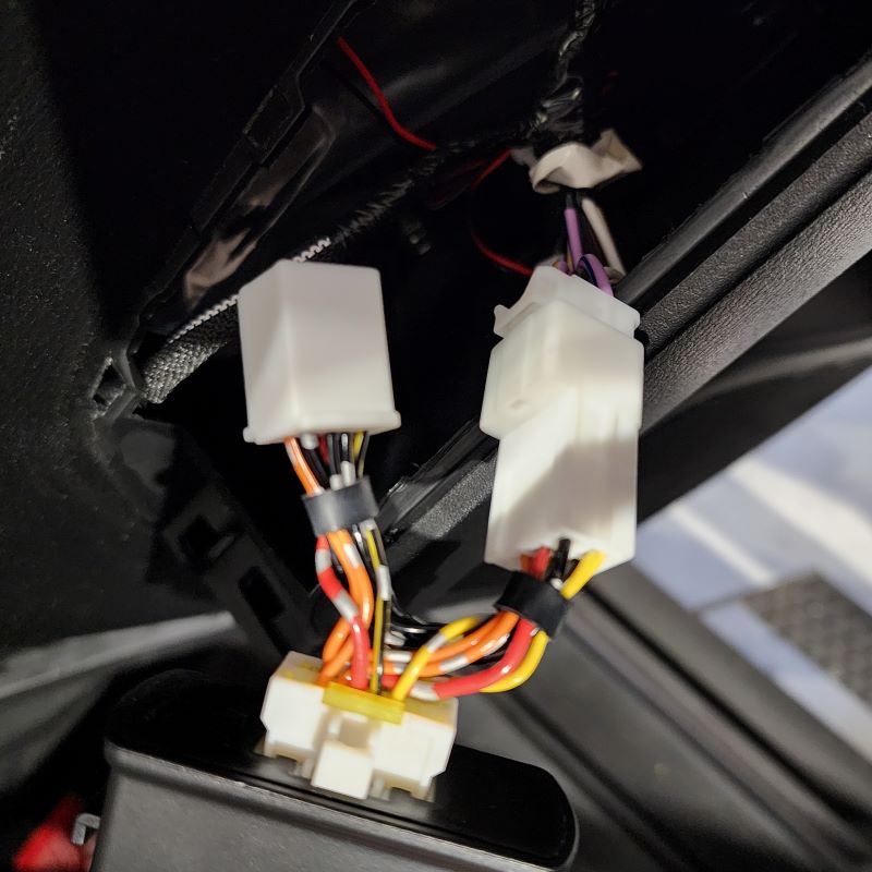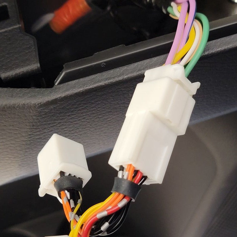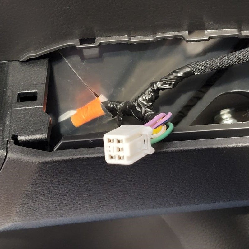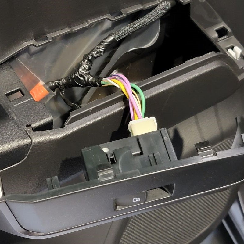 Using your included one touch harness, connect it to your factory harness inside your door panel. Now you have two white connectors left. The one that looks identical to what you just disconnected from Step 1, go ahead and plug the factory harness into this female connector. The last one is for your control module. It is the only one that will fit in this module so don't be too worried about selecting the wrong one.