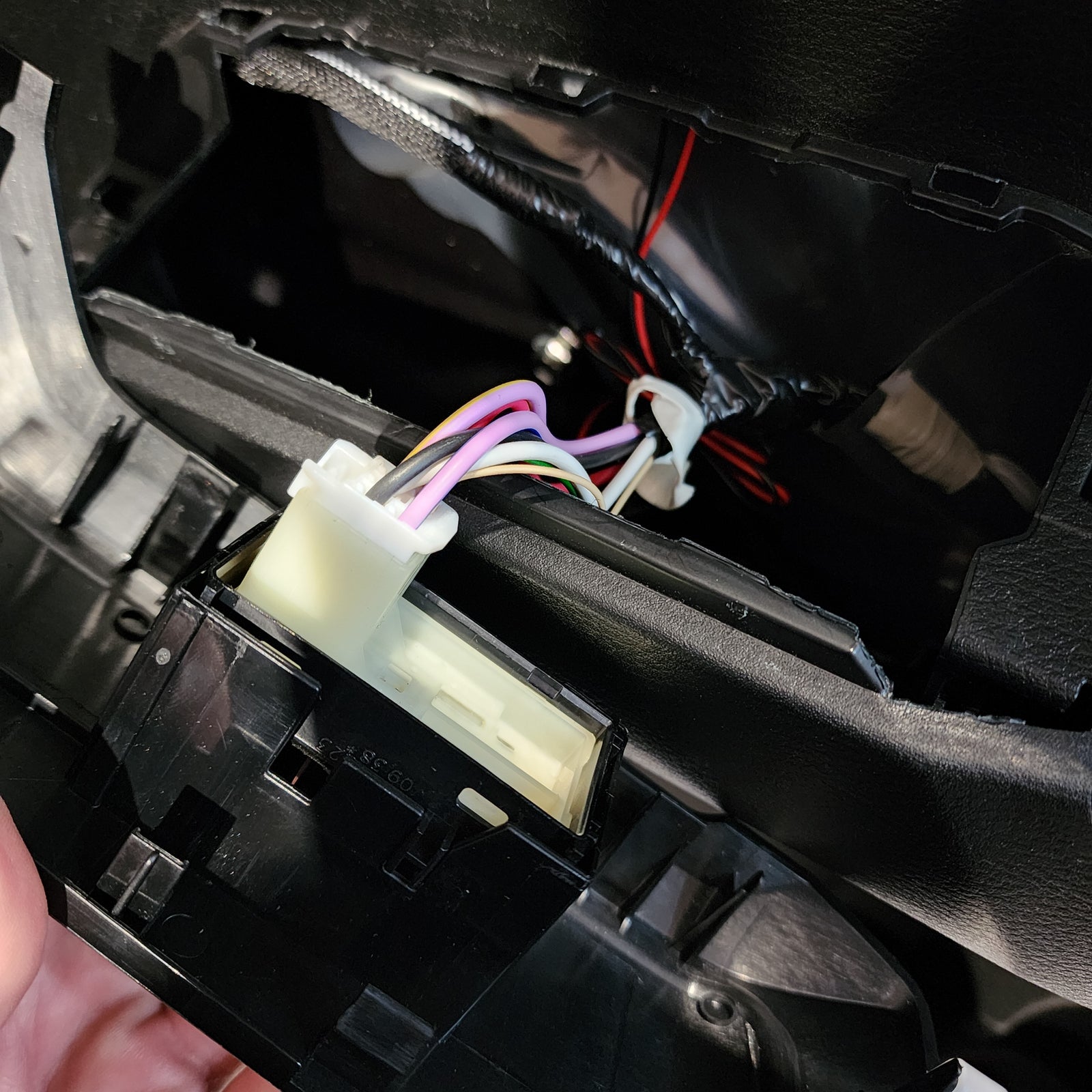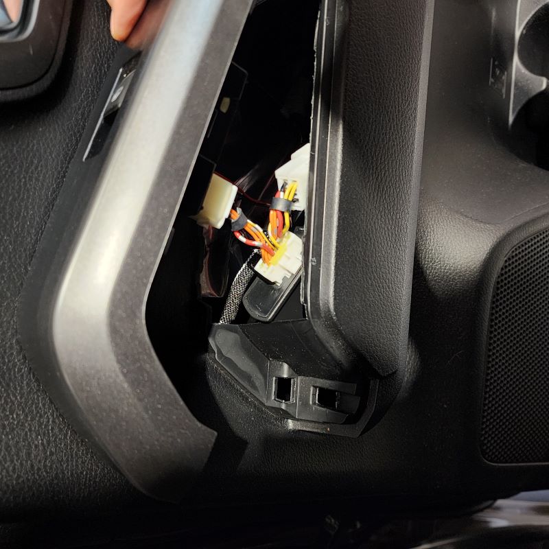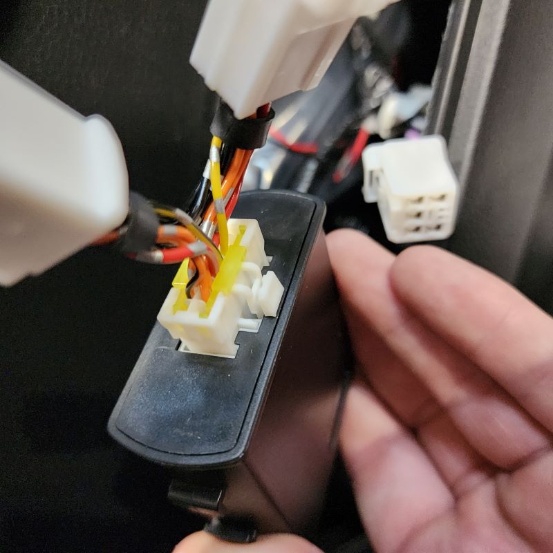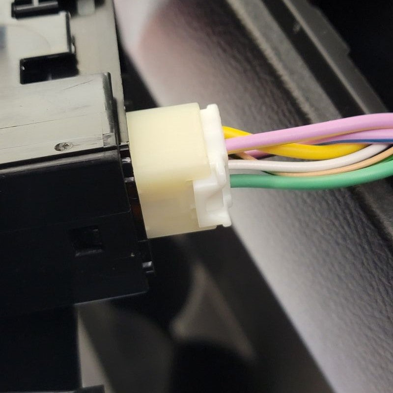 Following removal of panel, go ahead and disconnect the factory white connector that goes to the window switch. Please see below pictures and follow along.