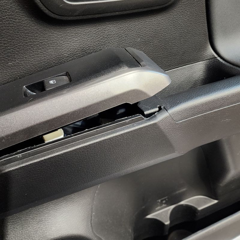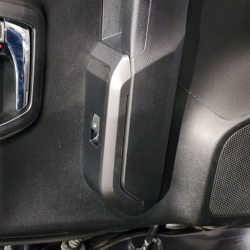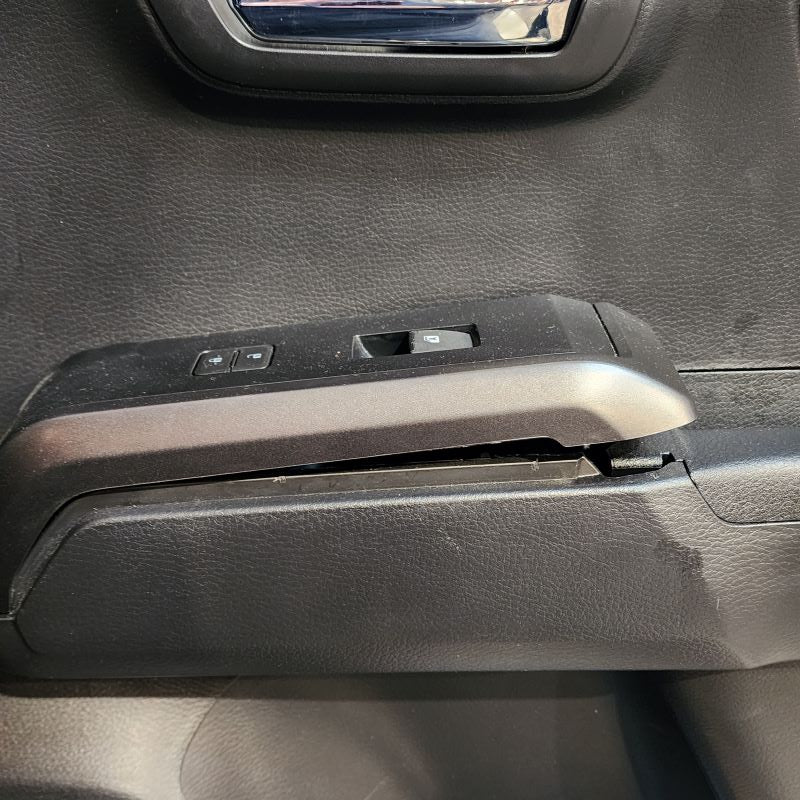 Using a Door Panel Remover or Trim Removal Tool remove your left rear passenger window switch trim panel from the door. Start at one end and then continue to release the panel from its locking tabs from underneath. Once you get one end up, you can use your hand to pull up on the rest of the panel.