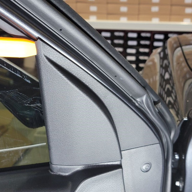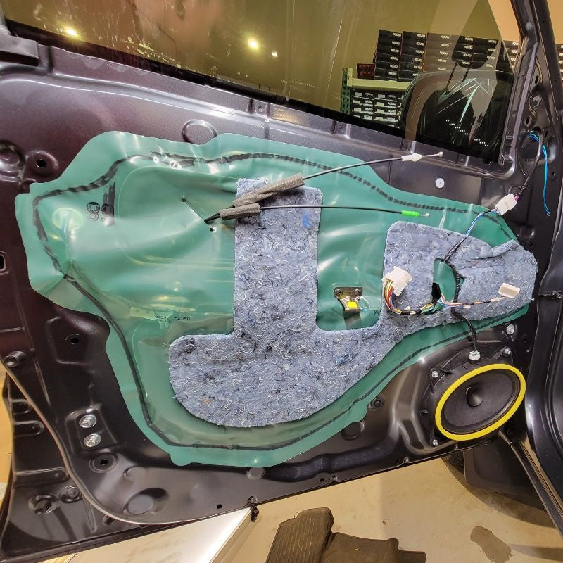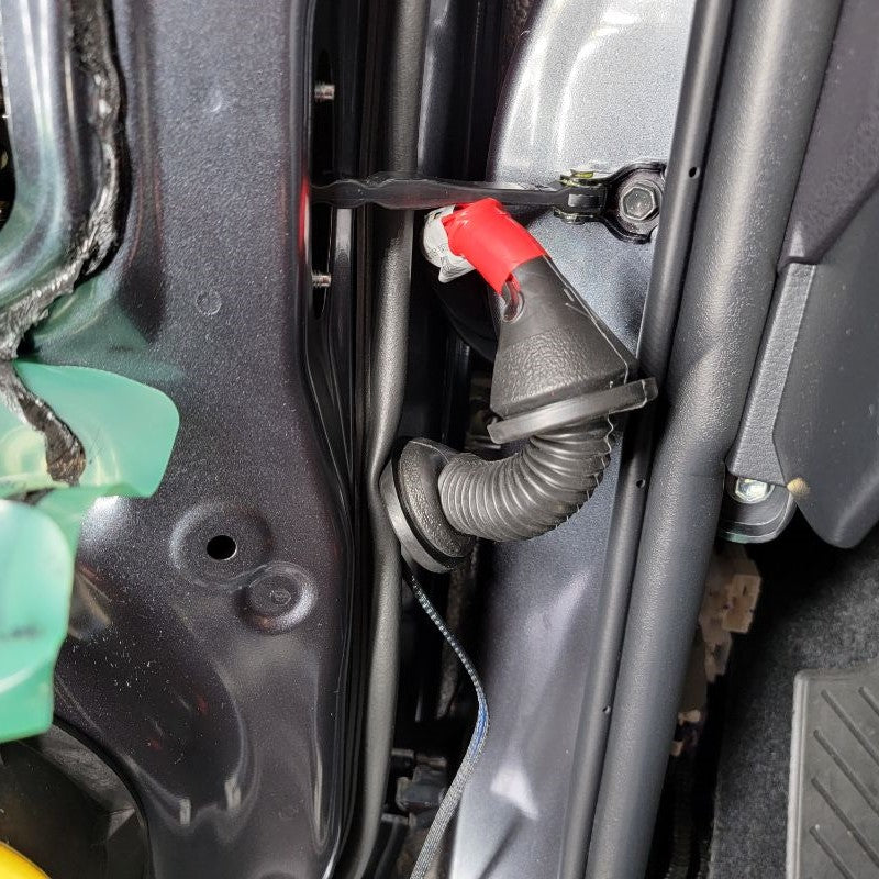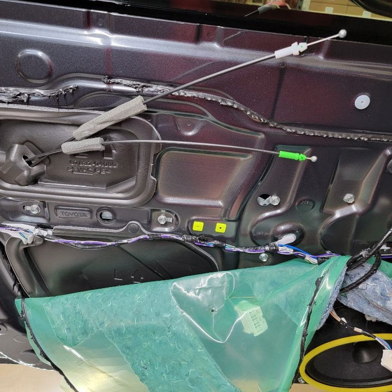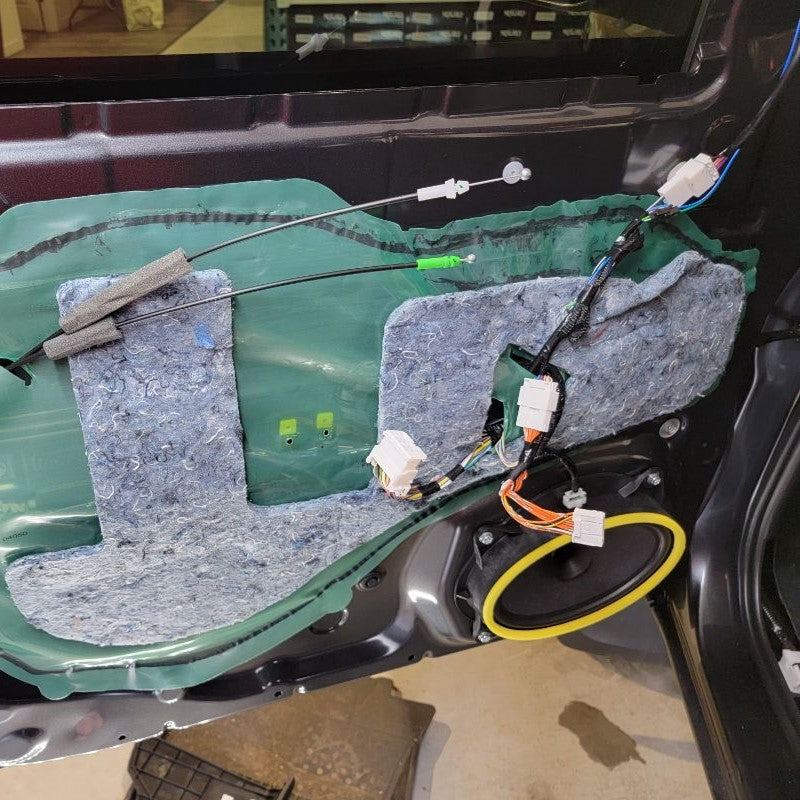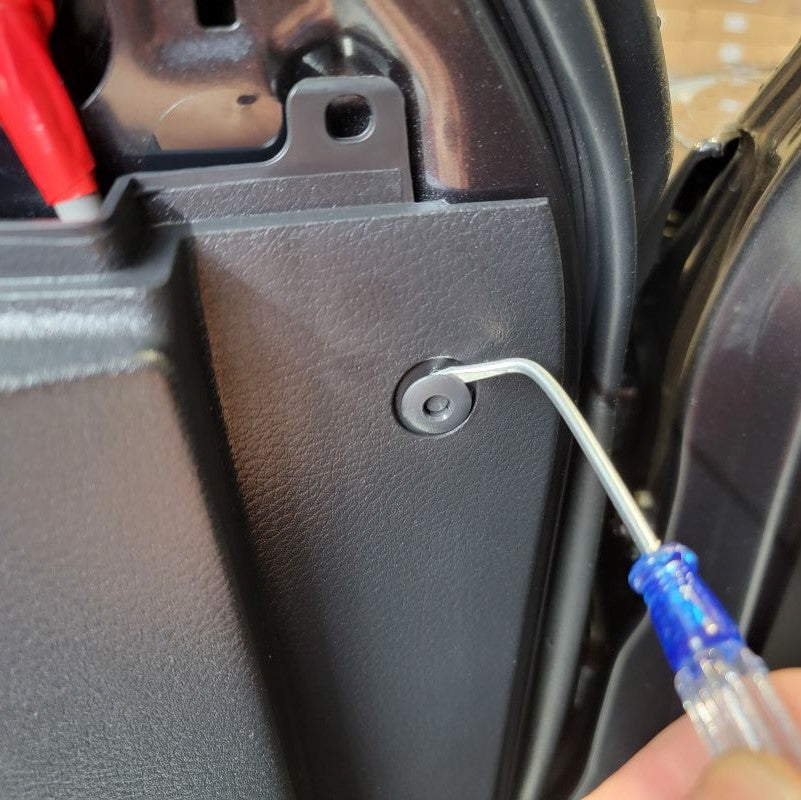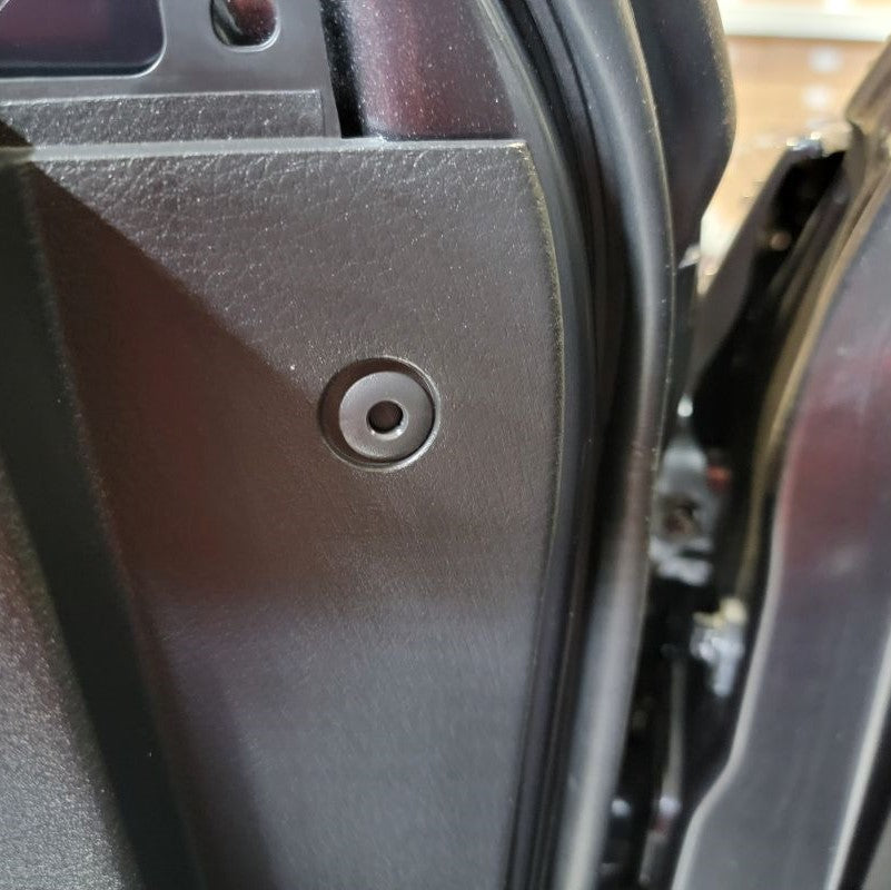 Let’s reattach them to the vehicle with the three original 10mm nuts. Make sure the wires are cleanly pulled through to the inner side of the door. Be careful not to lose your 10mm nuts in between the door panels because they will be lost for good.