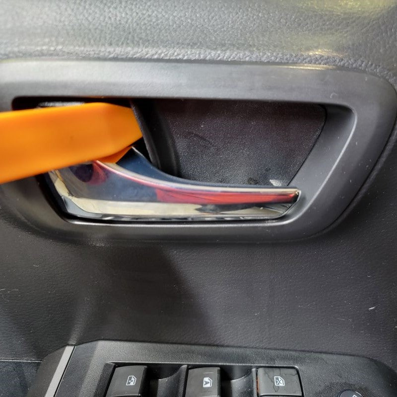 Using the trim removal tool, carefully pry open the lower mirror arm cover. It’s a handful of snap fits, so be careful not to break any.