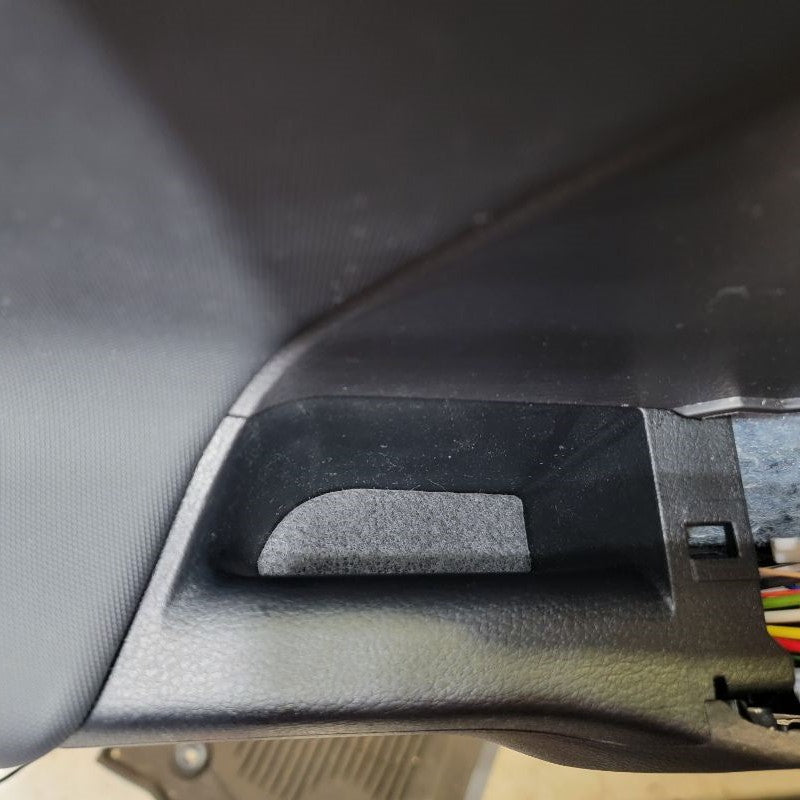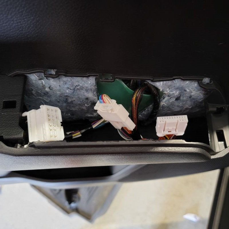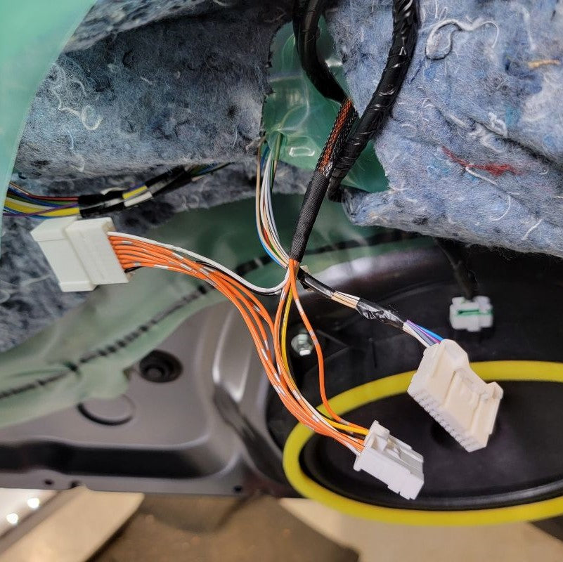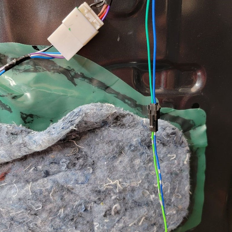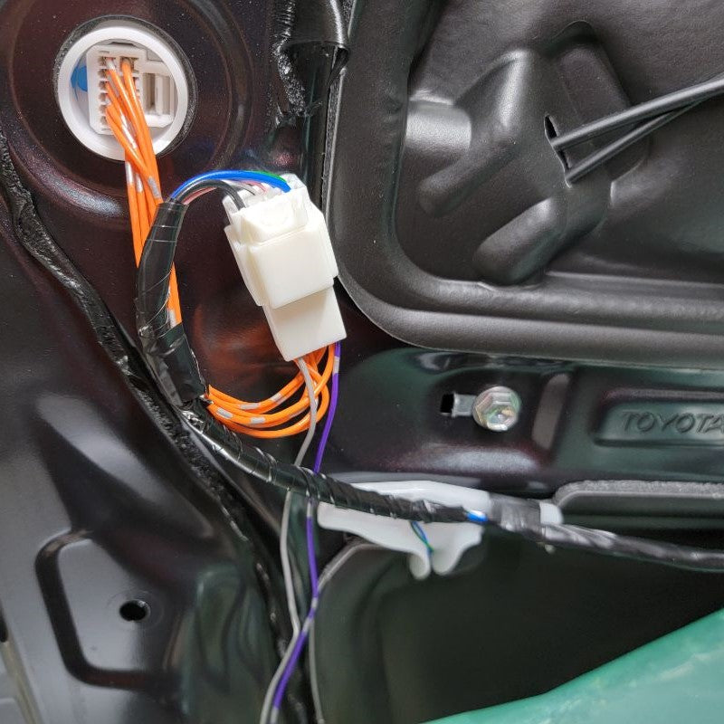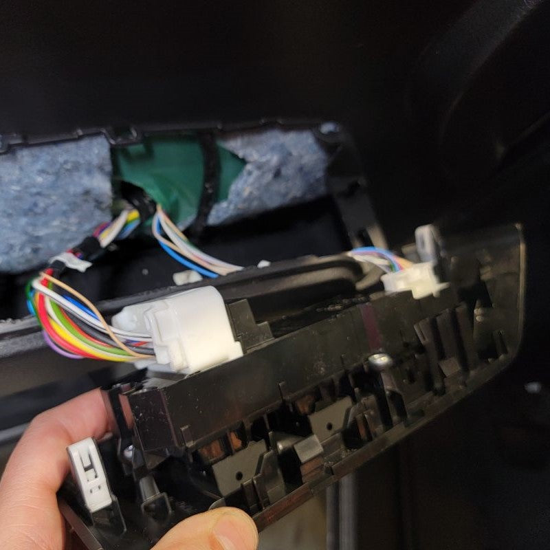 With now having the door frame exposed, we can easily find the mirror connector – just follow the wire that’s coming out of the mirror and routing down to the white connector at the top right side of the door. Remove the connector and any tape holding the cable in place.