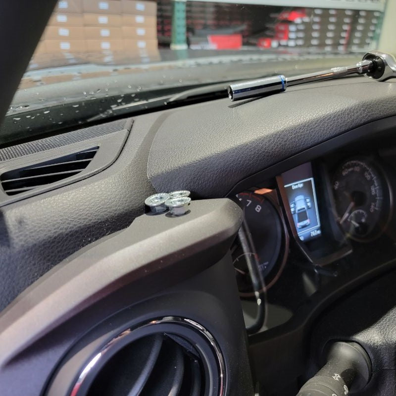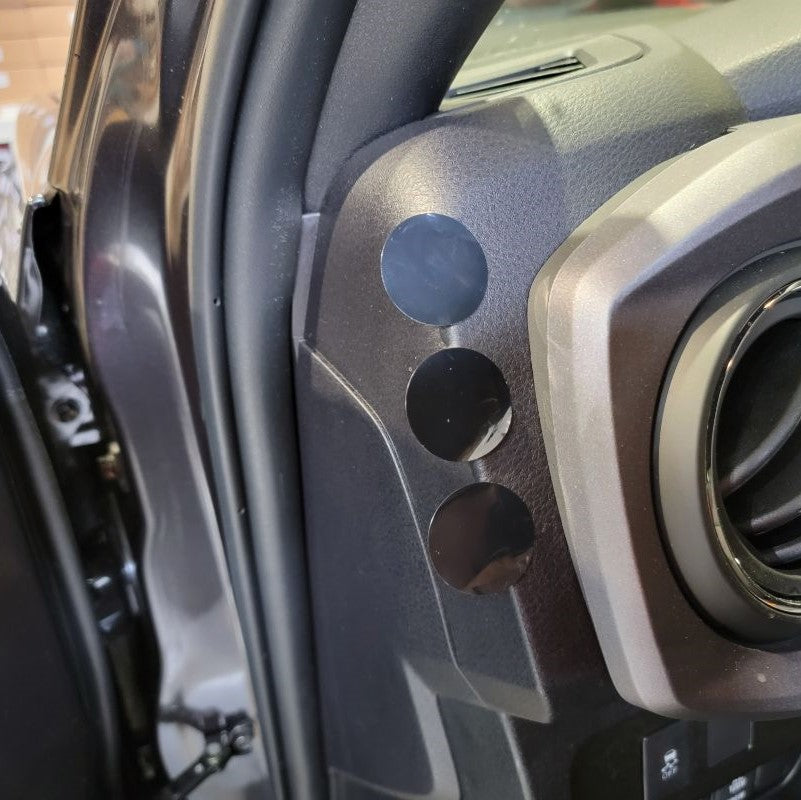 This is another time consuming step. Toyota did not do us Tacoma Owners a favor here by providing us three factory holes in our factory mirror arms to our mirrors. Therefore, we need to drills three holes just like the diagrams shows below to match the motor that we will be installing into our mirrors. Luckily, we have three indentions in our hinges that you will see when looking at your own oem mirrors to go off of as to where these three holes should go as a guide. Again, by taking on this DIY kit, you must be willing to drill into your own factory hinges at your own risk.