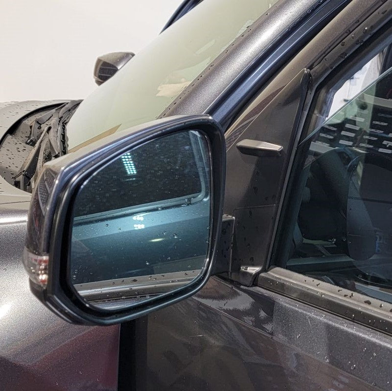 Set the driver side mirror to the side and follow Steps 1-3 for the passenger side mirror as well.