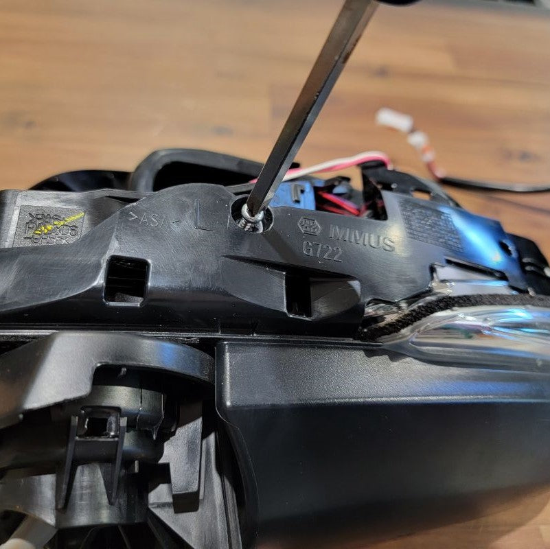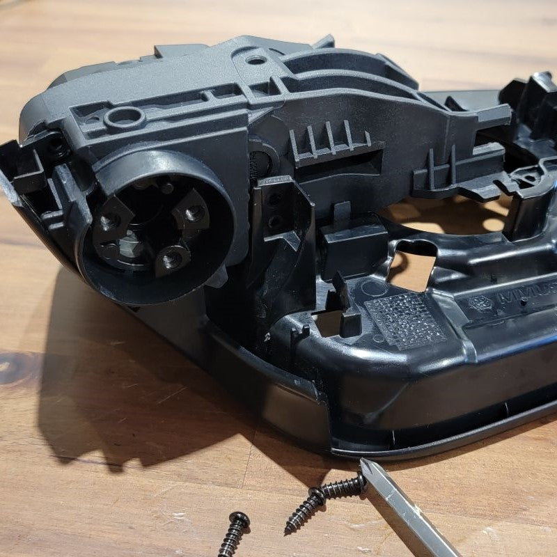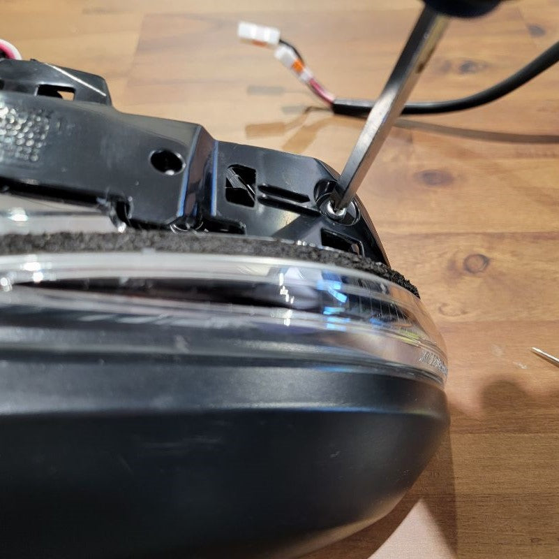 Once the costmetic back cover has been removed, you will now see some screws that need to be removed in order to seperate the lower cover with the turn signal from the mirror housing.