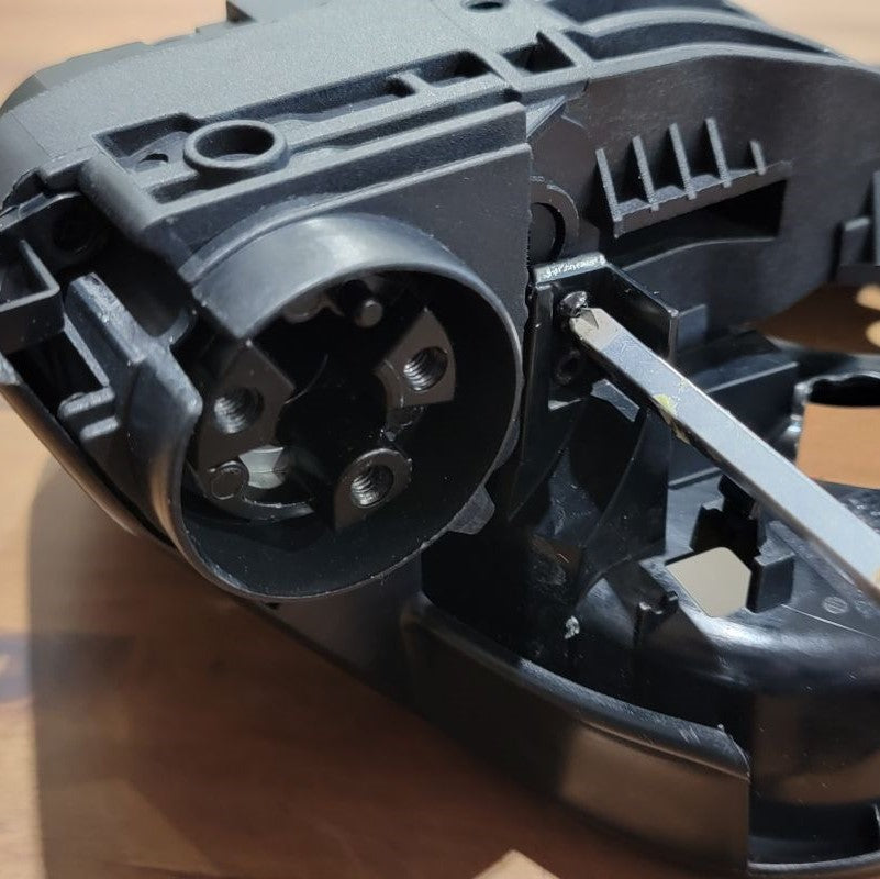 Now we can swap in the new arm bracket. The fit should be almost identical to the original arm bracket, so follow what you did in Step 7, except backward.