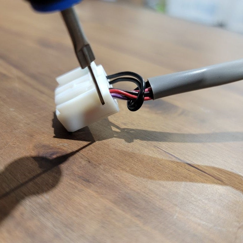 Grab a small flat head screw driver or your tool of choice and look closely at the full connector, you’ll notice four captive barbs on the external sides and between the two internal connectors. These need to be pushed in to release the internal connectors from the outer enclosure. Again, be careful that you do not damage this outer enclosure in the process as it will be needed to reassemble the two smaller connectors towards the end of this mod.