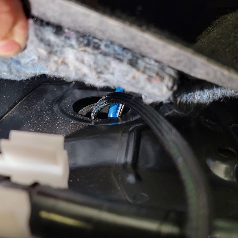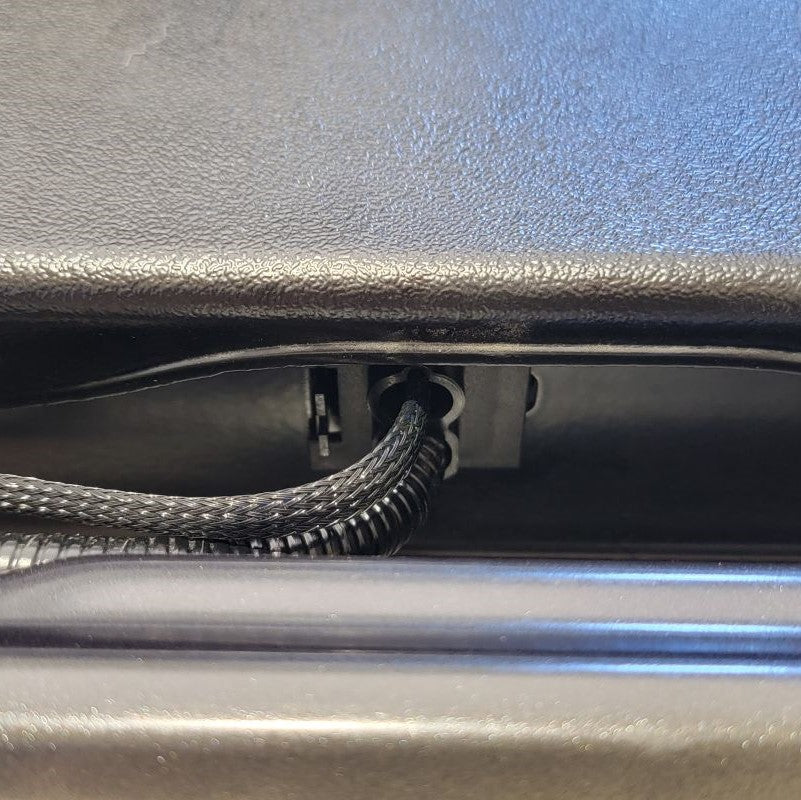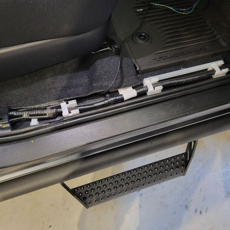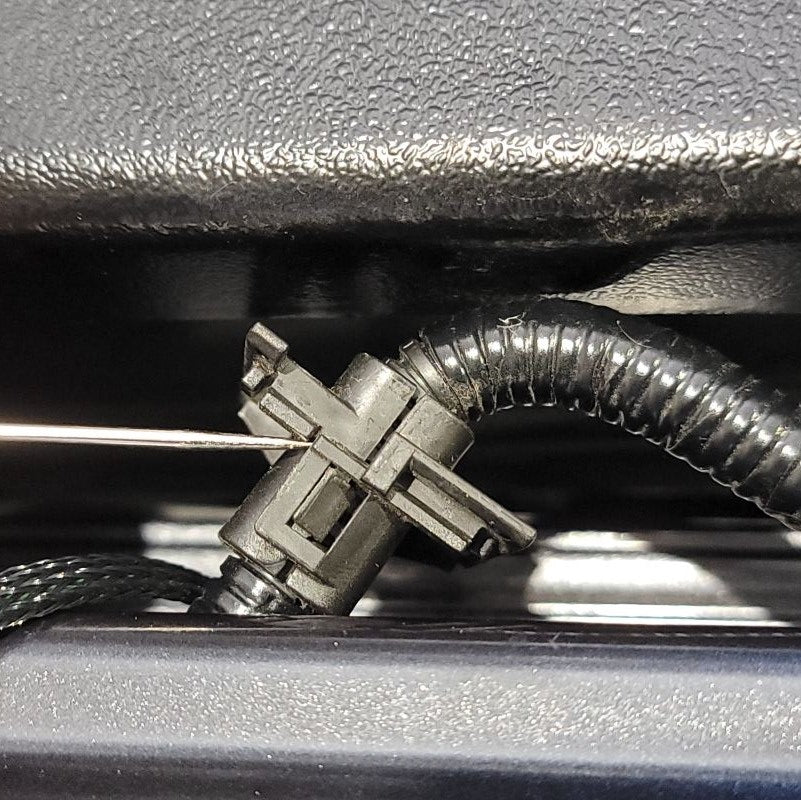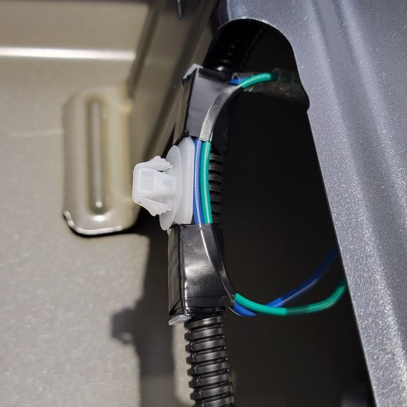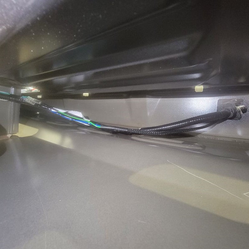 To make it nice and clean, you'll want to run the wiring harness through the white factory clips that are attached to the carpet/frame of the truck. Once you get towards the front of the truck where the side kick panel is located, you will want to match up the Plug-N-Play Harness that is included in the package. Connect the supplied wire harness to the factory connector.