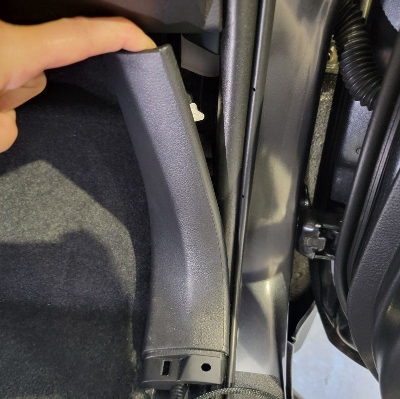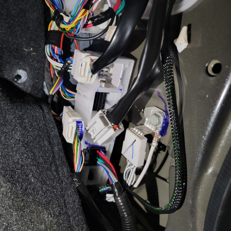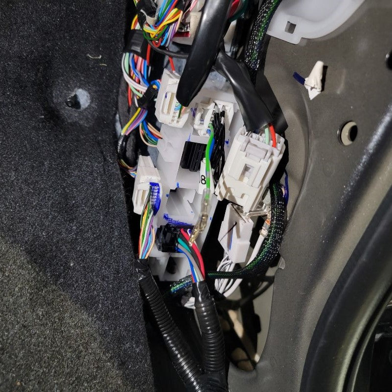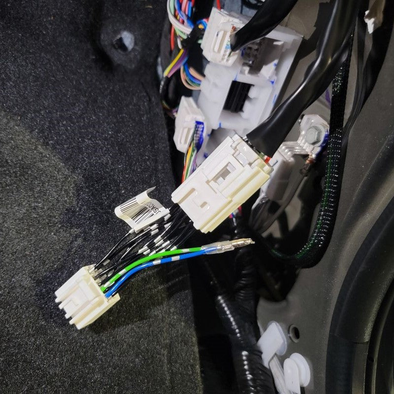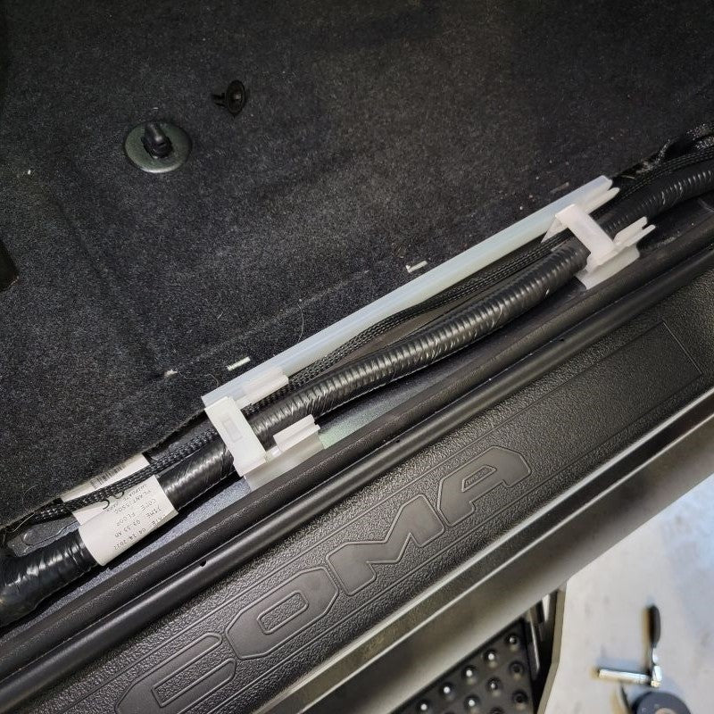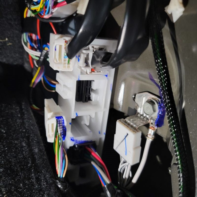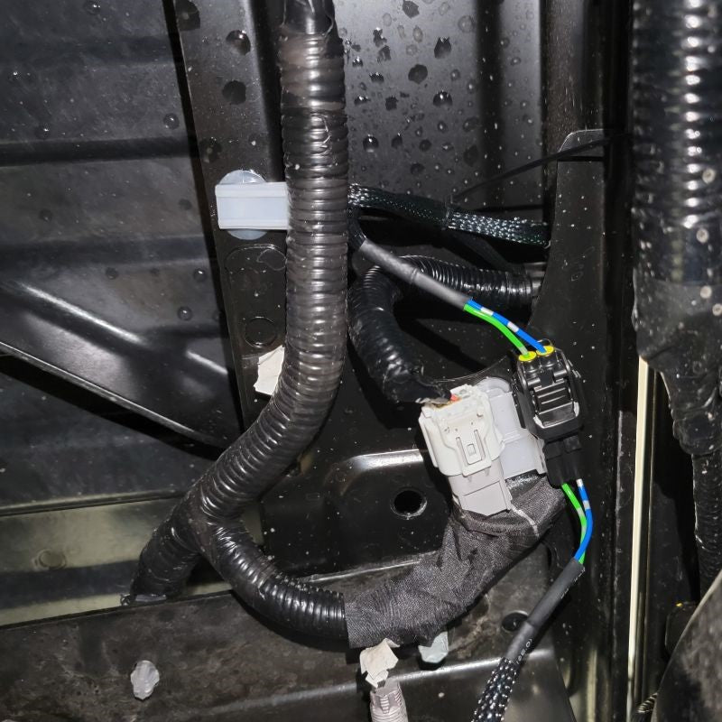 To make it nice and clean, you'll want to run the wiring harness through the white factory clips that are attached to the carpet/frame of the truck. Once you get towards the front of the truck where the side kick panel is located, you will want to match up the Plug-N-Play Harness that is included in the package. Connect the supplied wire harness to the factory connector.