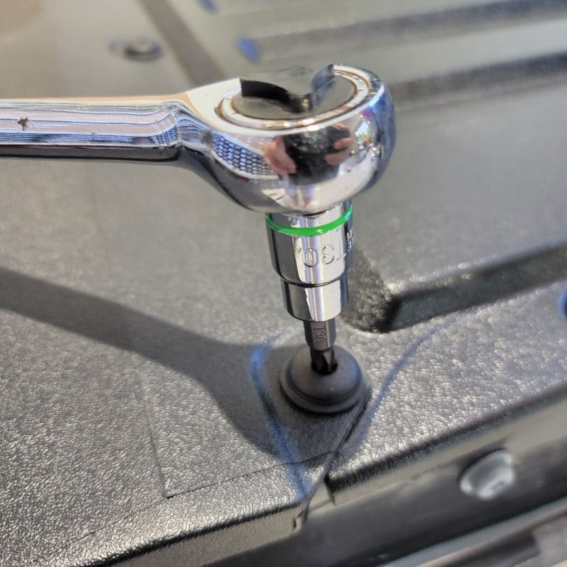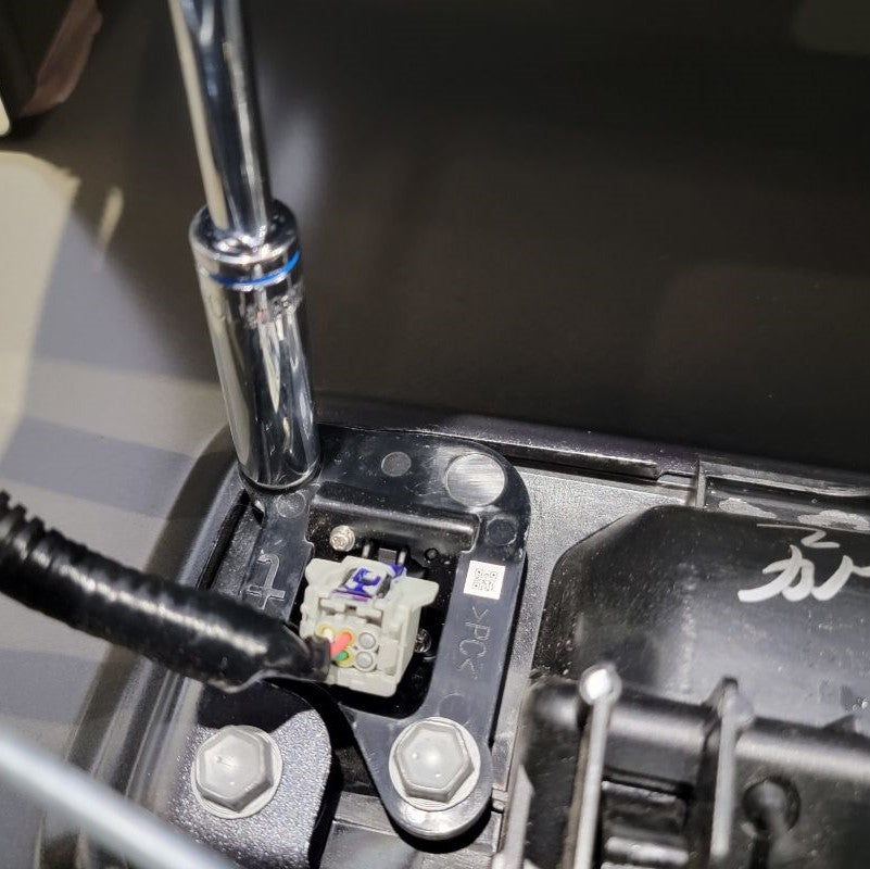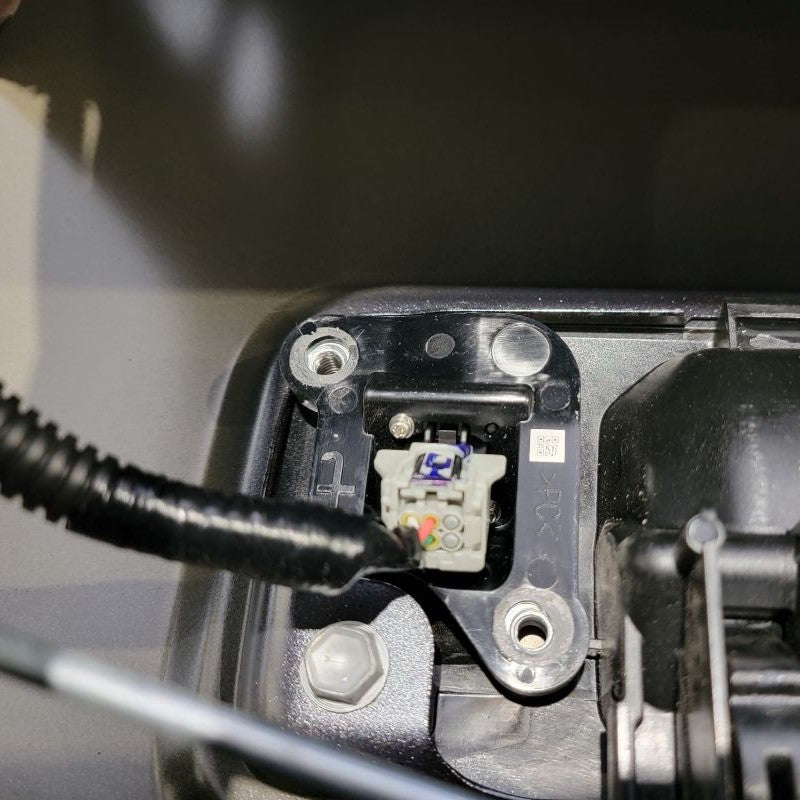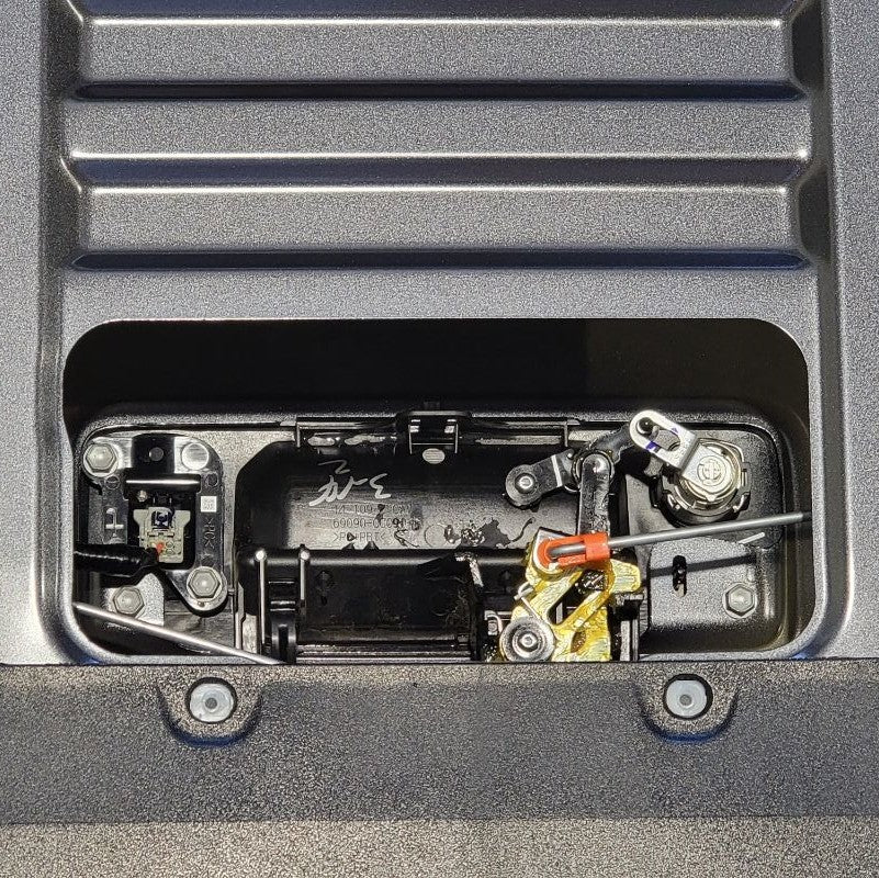First, we are going to remove the two 10 mm bolts that are holding the factory oem tailgate camera in place. This is where we will be installing our new Bolt-N-Lock Bracket with our newly attached Locking Actuator. You can install the bracket once these two bolts have been removed by aligning the bracket up directly with the two holes and then simply reinserting the two 10 mm bolts.