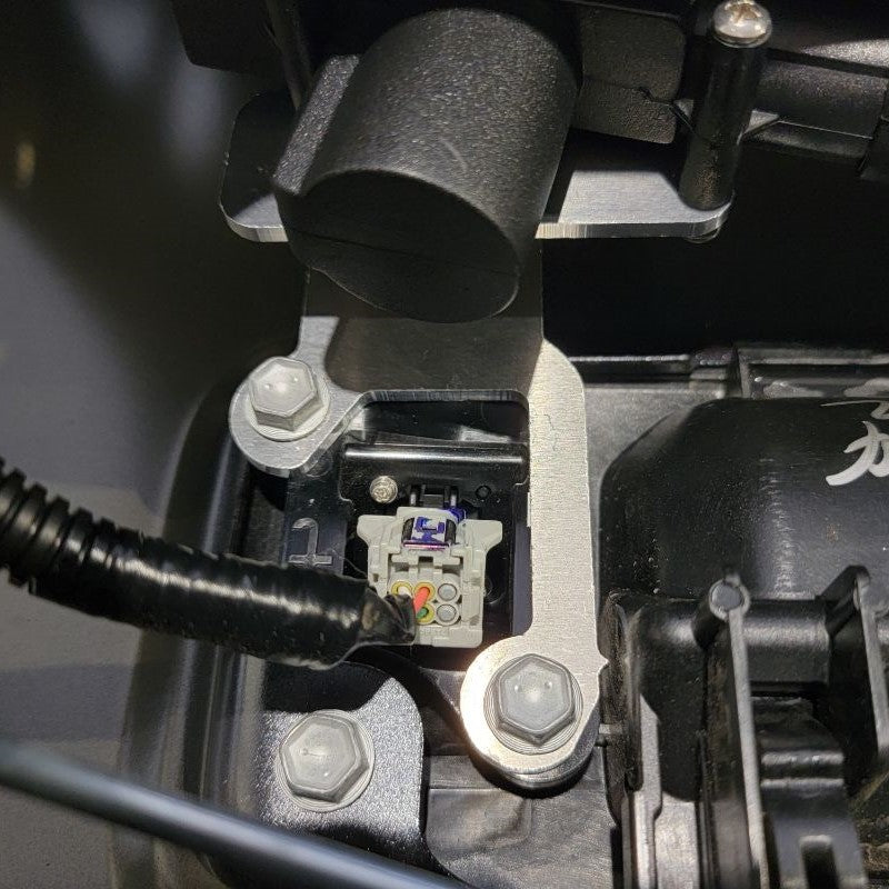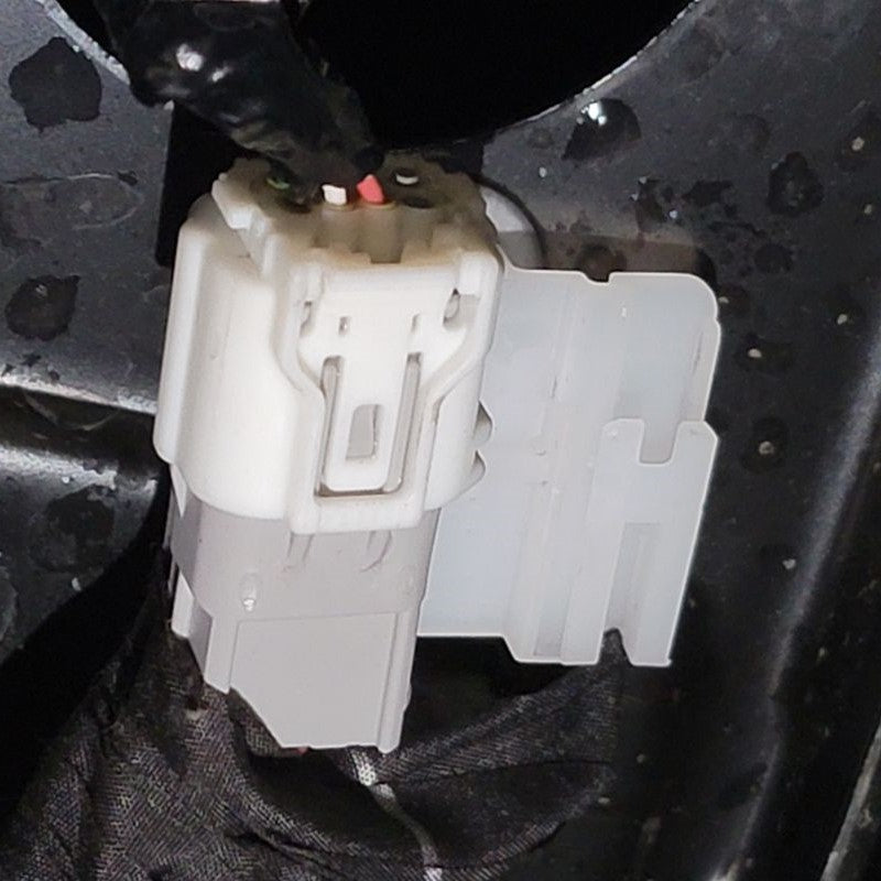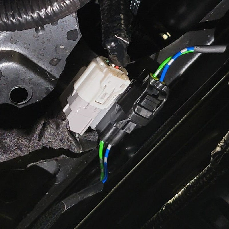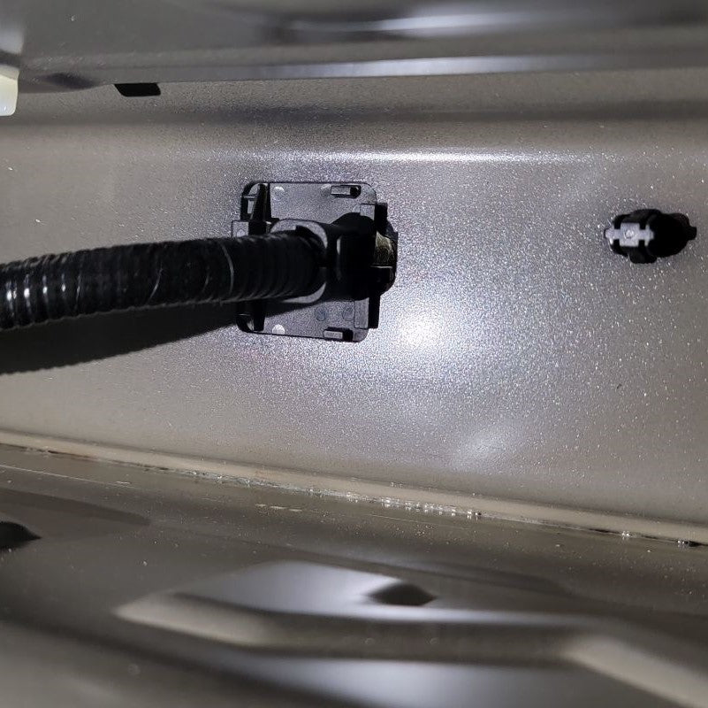 Begin routing the wiring harness along the passenger side frame starting where you left off at the rear bumper. Use the quick-connect that is provided for you in the harness to make it easy to disconnect whenever you may need to in the future. Toyota was very kind and left us a spot to join the factory camera harness disconnect connector.
