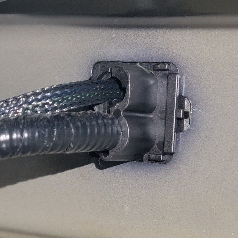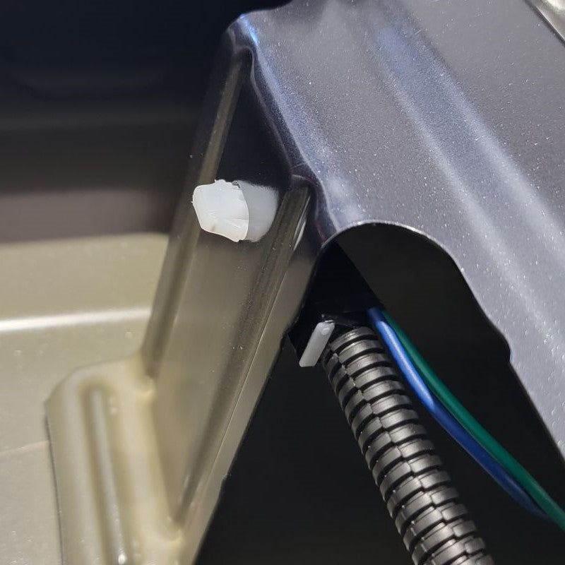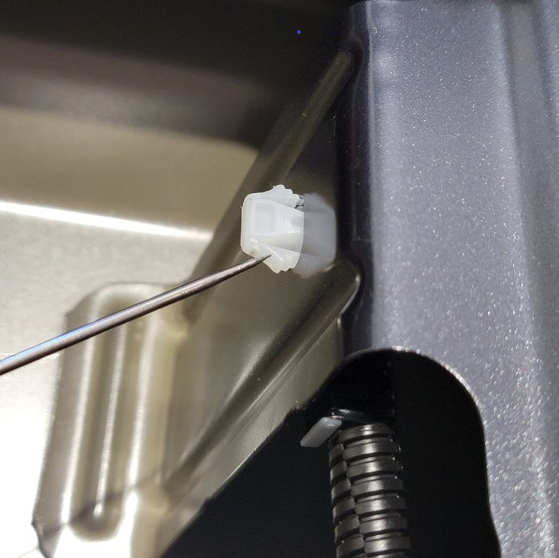 In order to remove the two tailgate harness protectors, you may need a small flathead screw driver. Pry them out carefully to not scratch the paint on your truck. Once you removed these tailgate wire protectors, you can set them aside and grab your new dual wire harness protectors that are included. Now pull the wiring harness all the way through and re-insert the first one back inside the tailgate. Do the same to the bumper side.