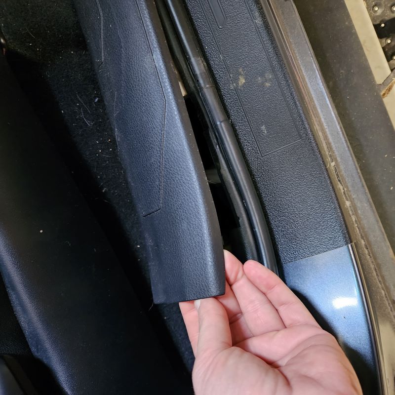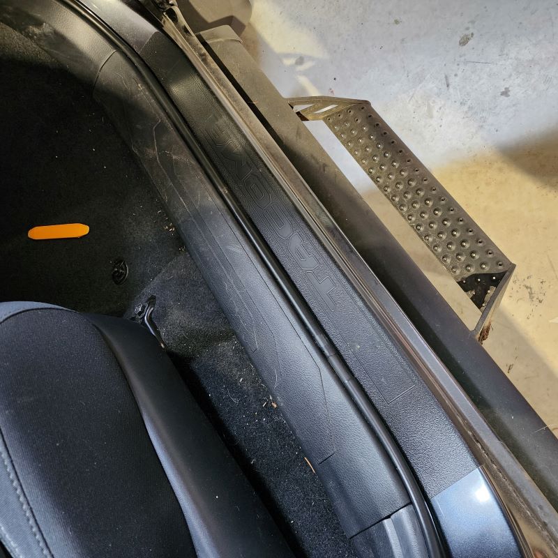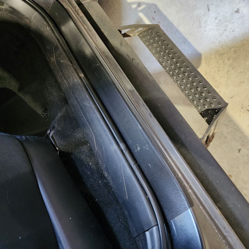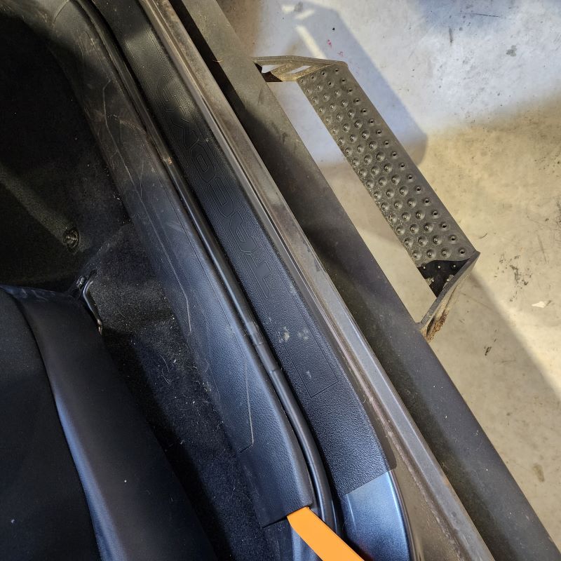 Last, re-install your door sill. Prior to pushing this panel down into place, just make sure all the tabs on the back side line up with their respectful locations. If not, you can damage the tabs and they will get bent. Also, your door sill will not be fastened down to the floor and remain loose.
