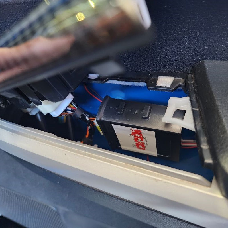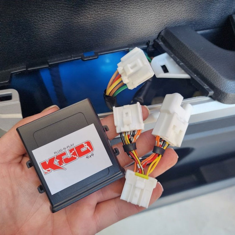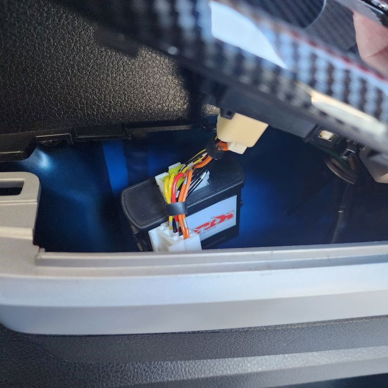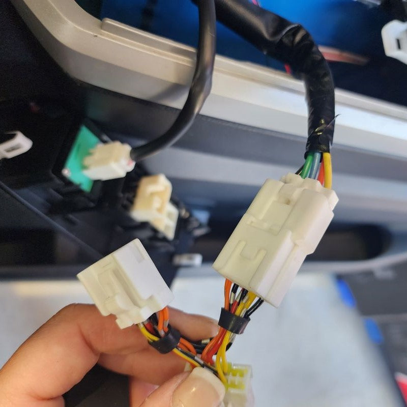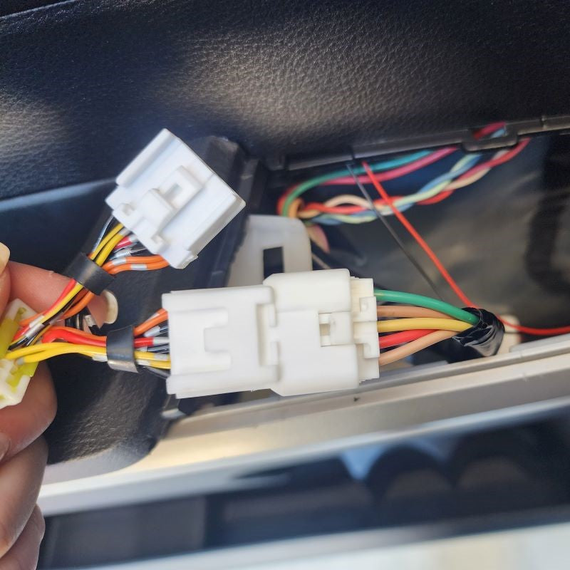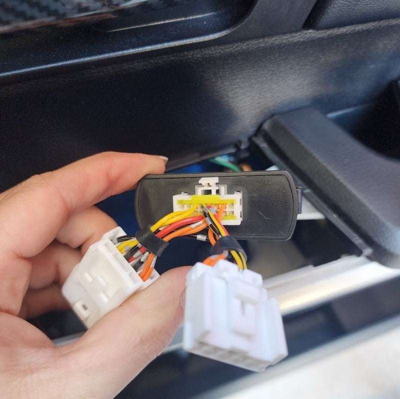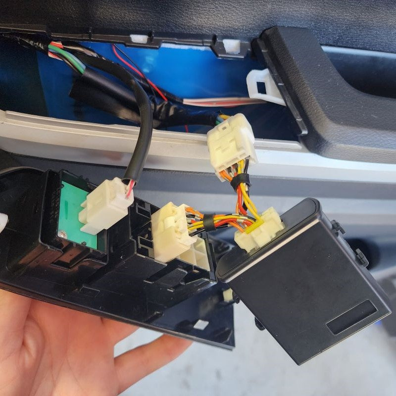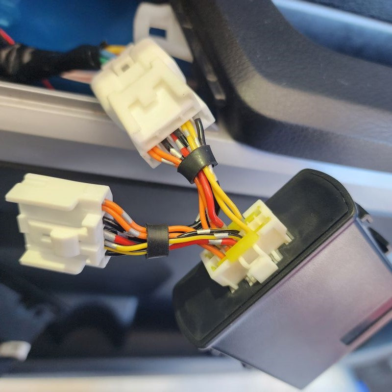 Using your included one touch harness, connect it to your factory harness inside your door panel. Now you have two white connectors left. The one that looks identical to what you just disconnected from Step 1, go ahead and plug the factory harness into this female connector. The last one is for your control module. It is the only one that will fit in this module so don't be too worried about selecting the wrong one.