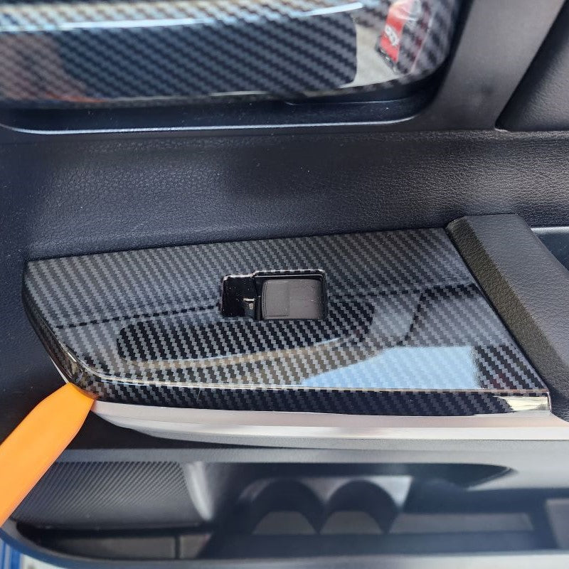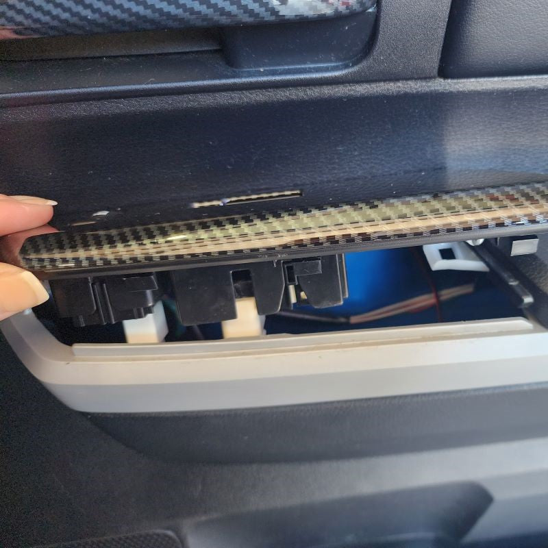 Using a Door Panel Remover or Trim Removal Tool remove your left rear passenger window switch trim panel from the door. Start at one end and then continue to release the panel from its locking tabs from underneath. Once you get one end up, you can use your hand to pull up on the rest of the panel.