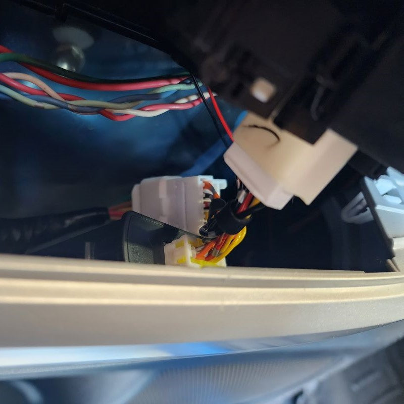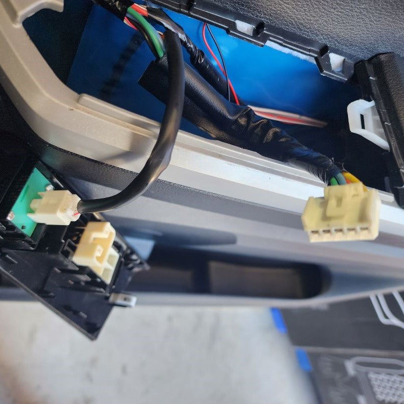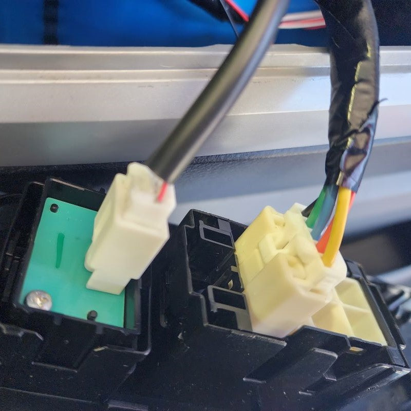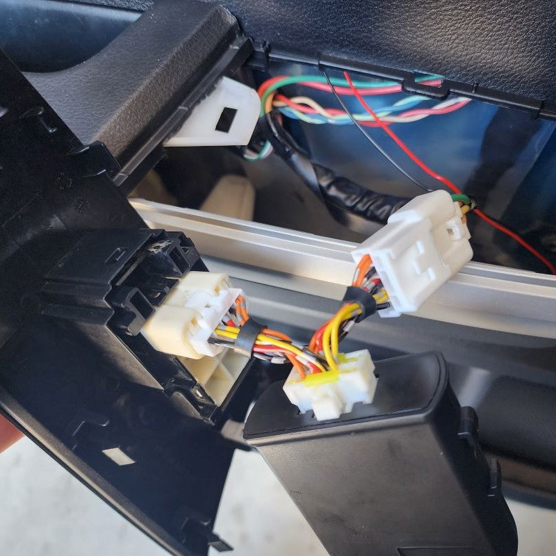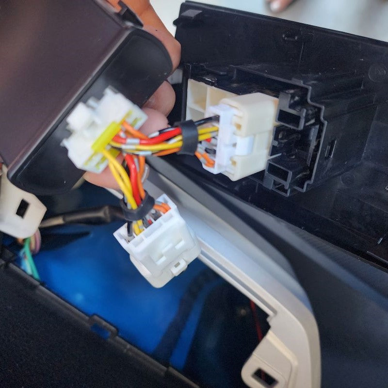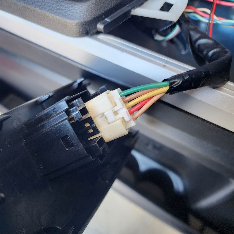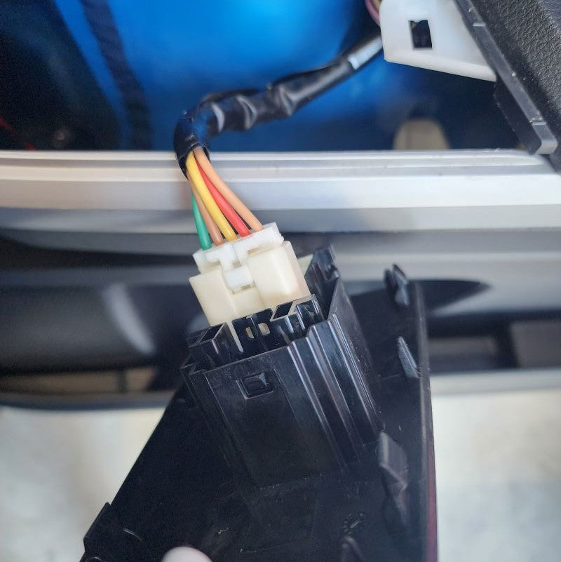 Following removal of panel, go ahead and disconnect the factory white connector that goes to the window switch. Please see below pictures and follow along.