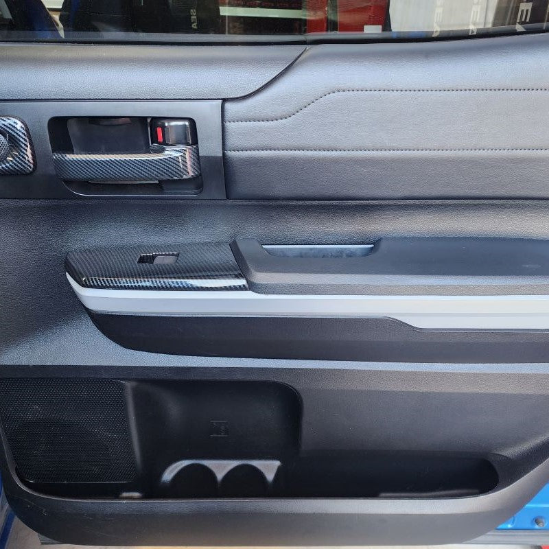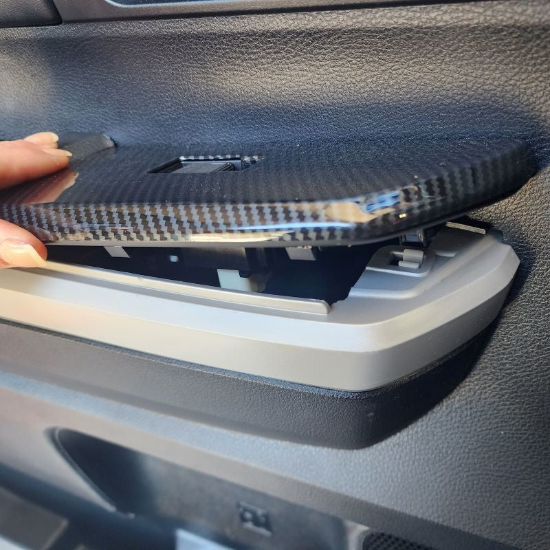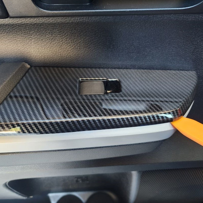 Using a Door Panel Remover or Trim Removal Tool remove your right rear passenger window switch trim panel from the door. Start at one end and then continue to release the panel from its locking tabs from underneath. Once you get one end up, you can use your hand to pull up on the rest of the panel.
