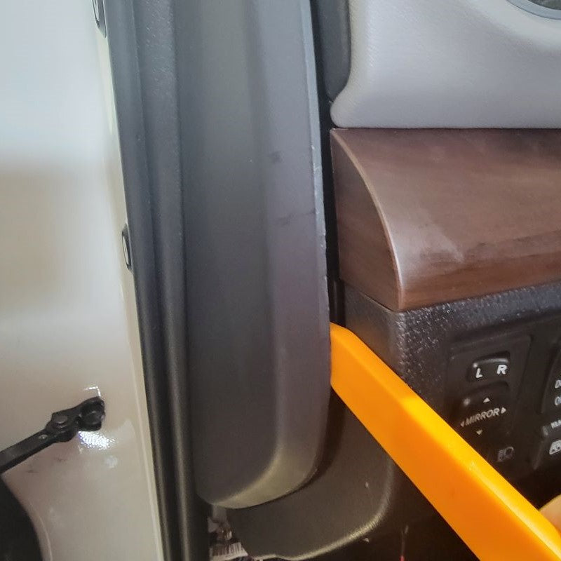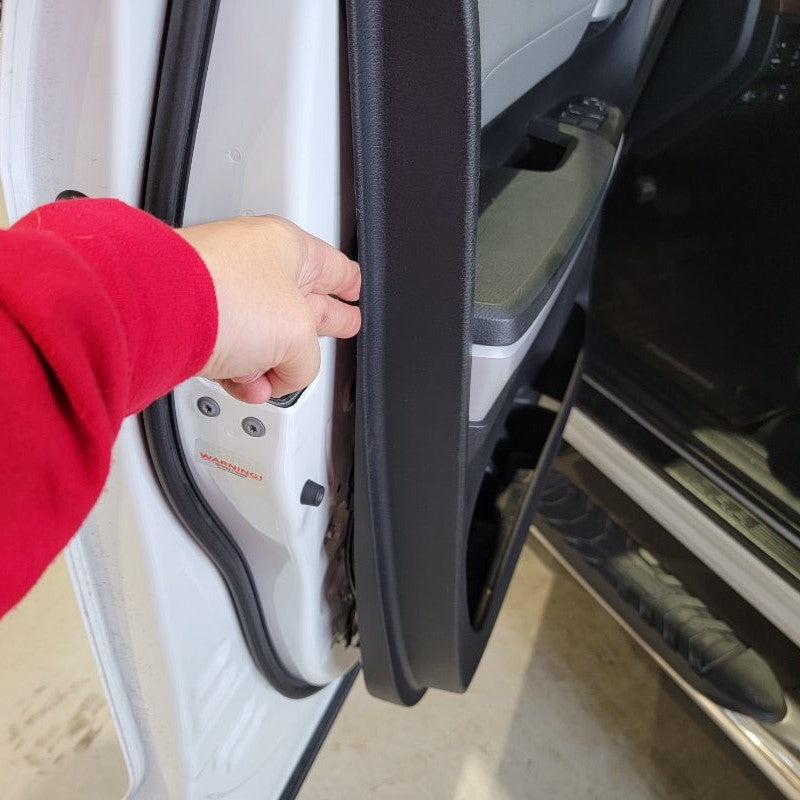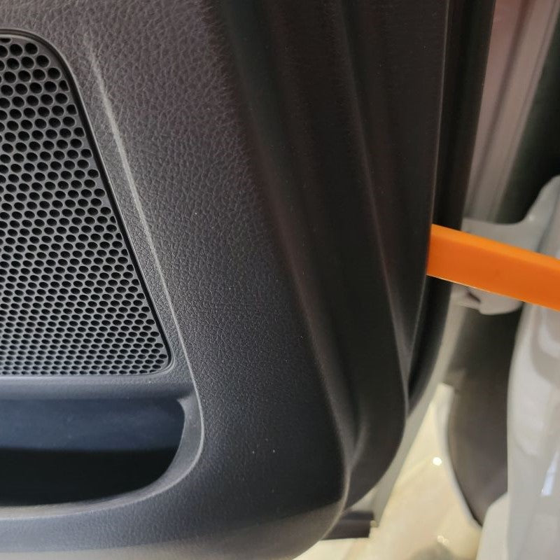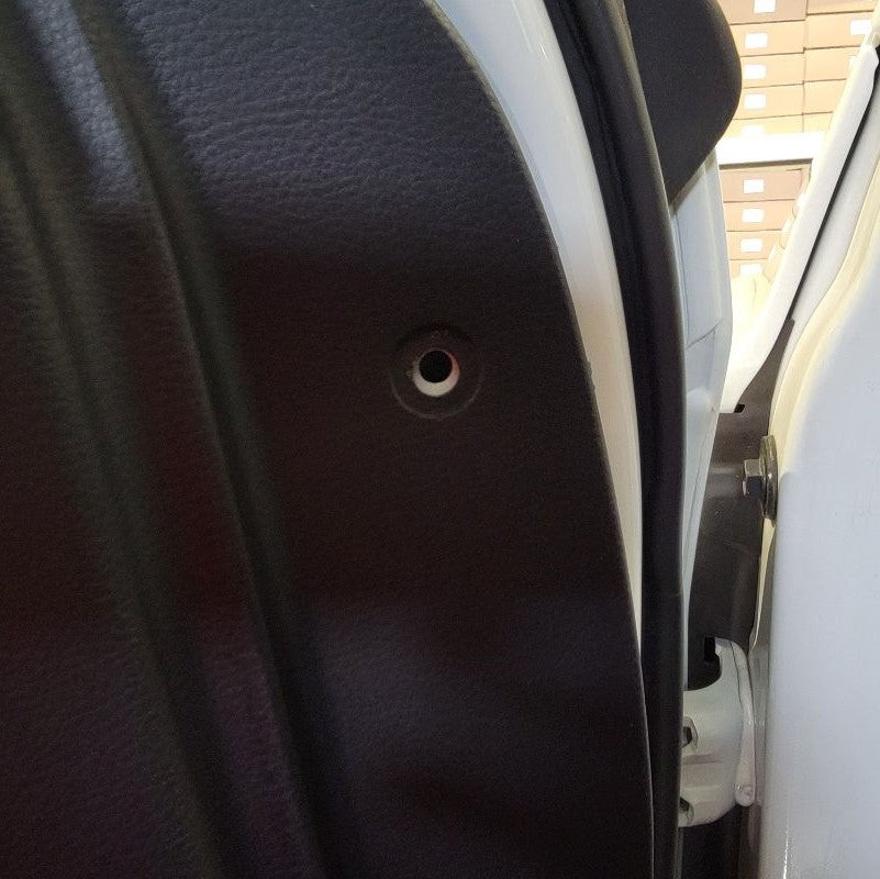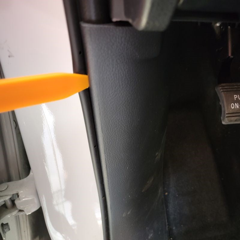 Finally, at this time look around your door frame and make sure all of your white fasteners were removed with the door panel. If there are some still in the door, remove them and reinstall the missing fasteners back in your door panel for later.