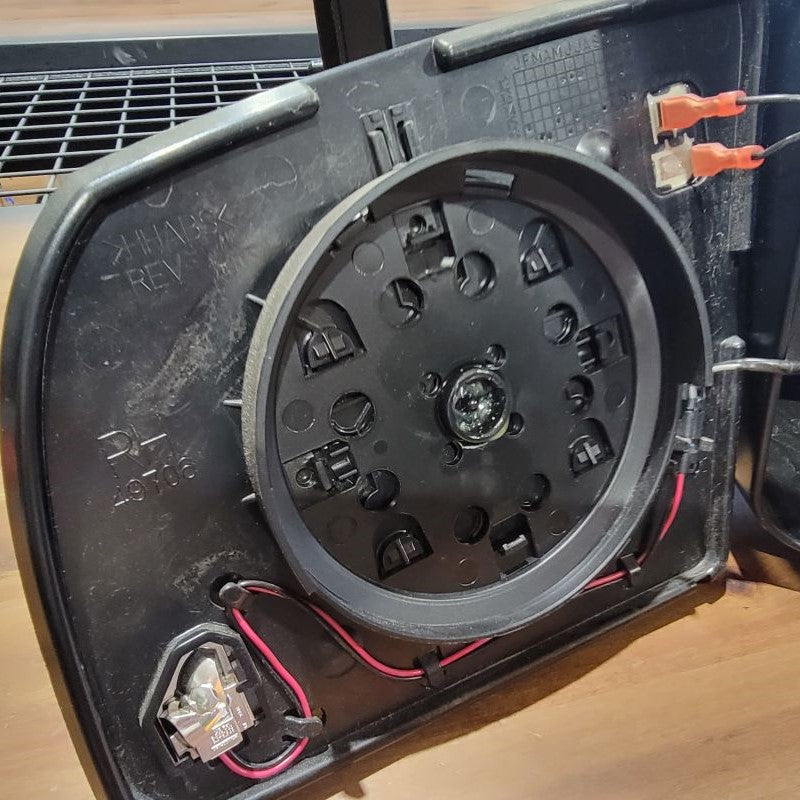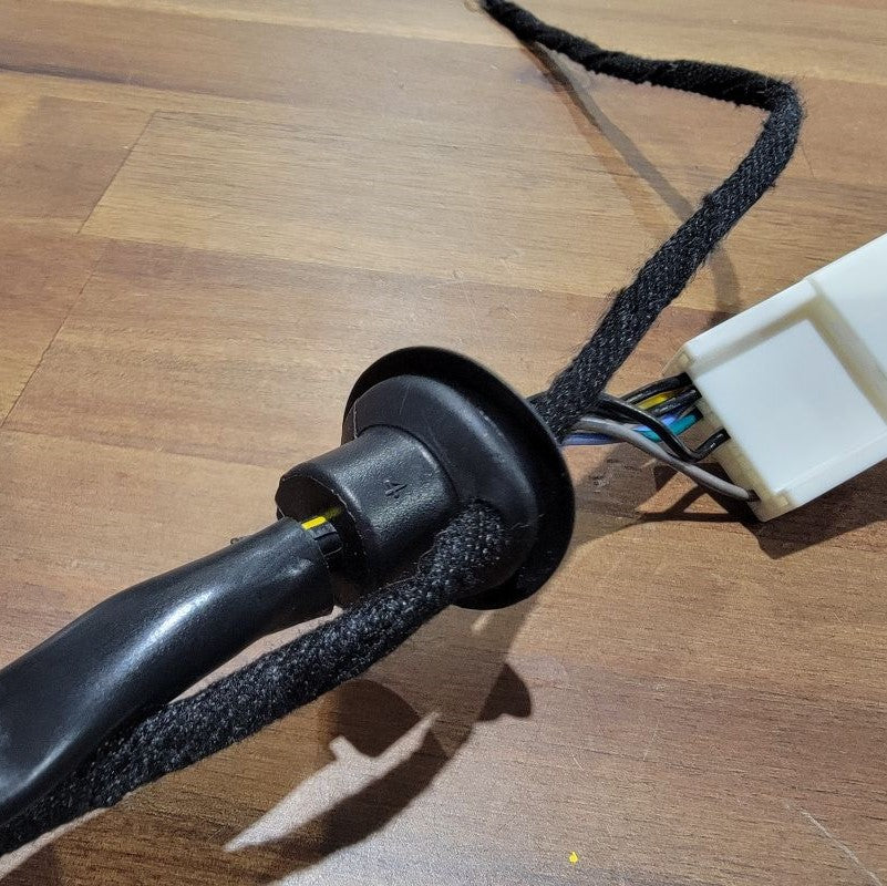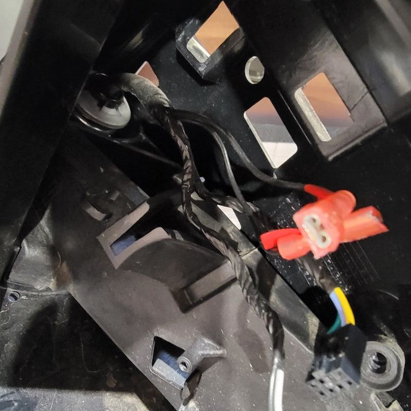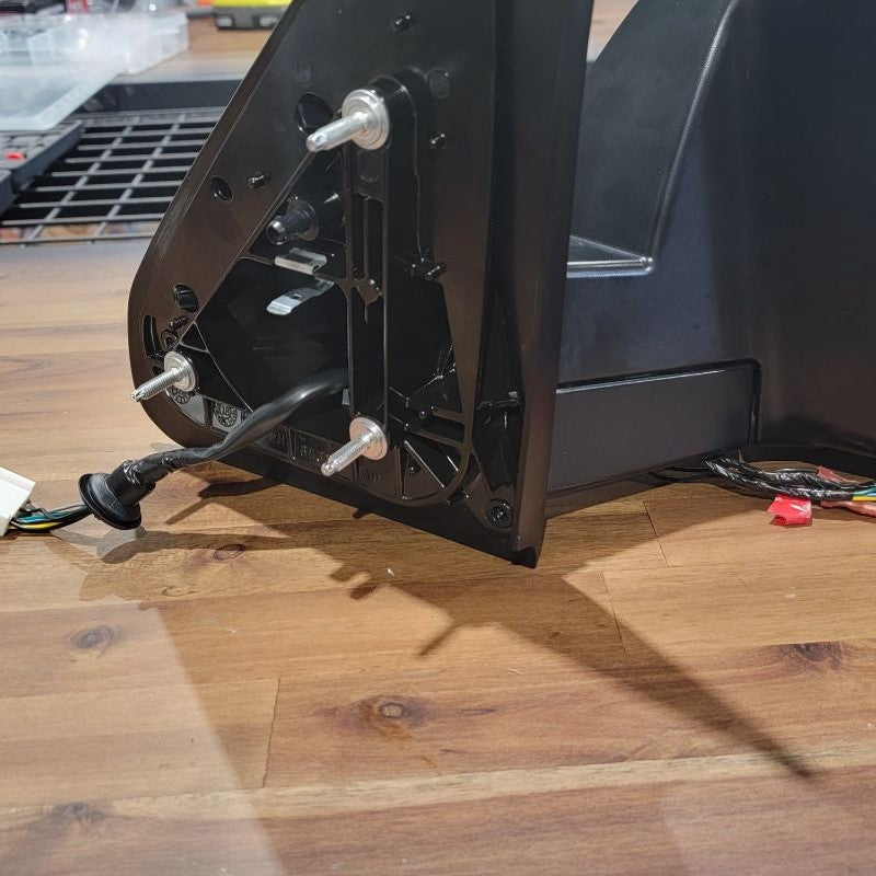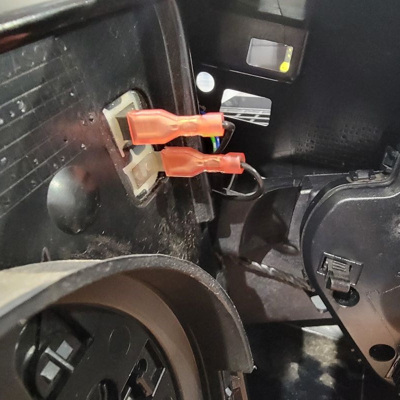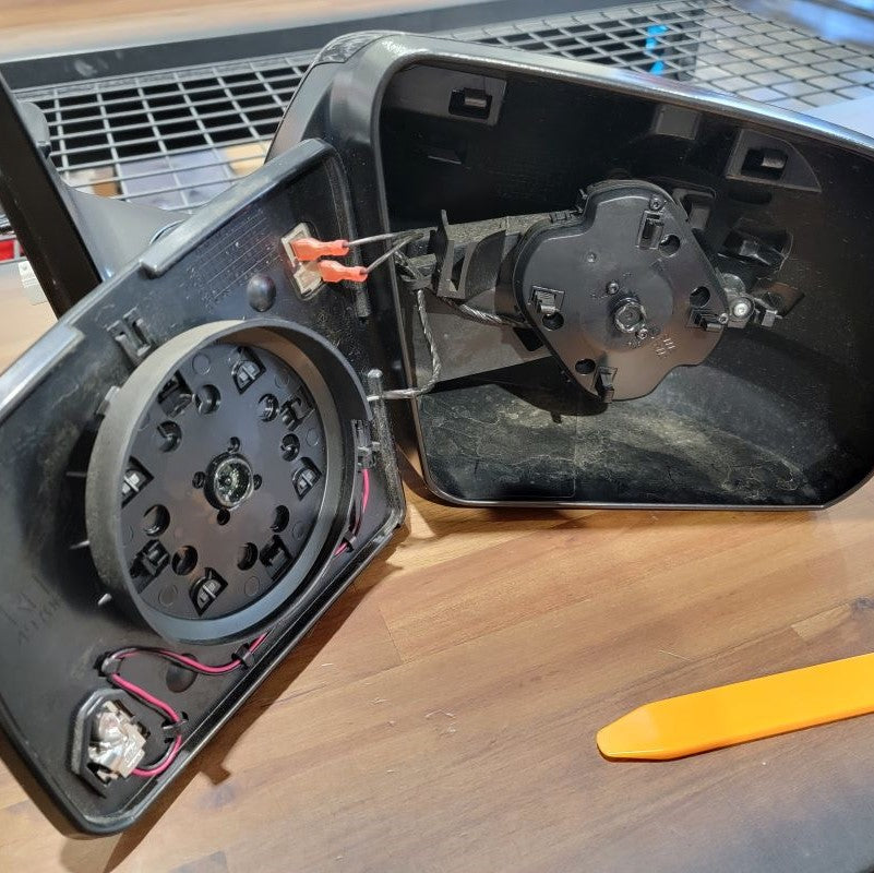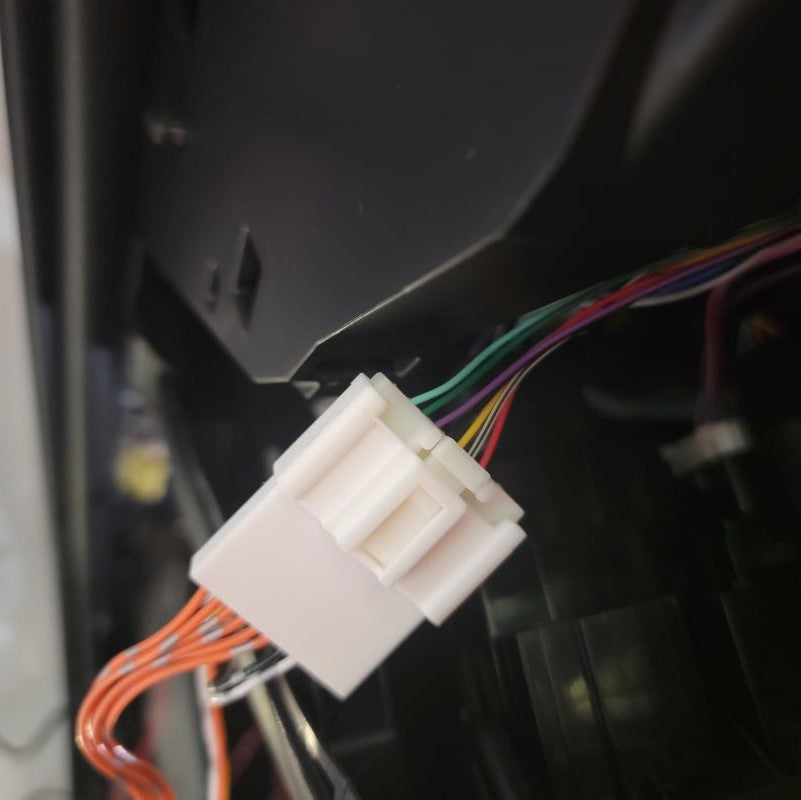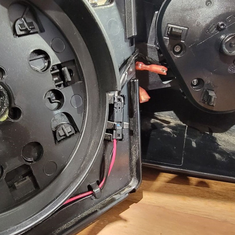 Now that we’re done pulling the cable through tight gaps, we can reassemble the two inner connectors into the outer housing and plug it back into the mirror receptacle. The power wires from the motor remain free.