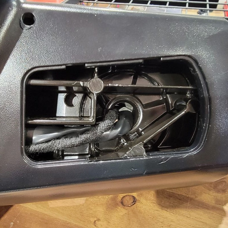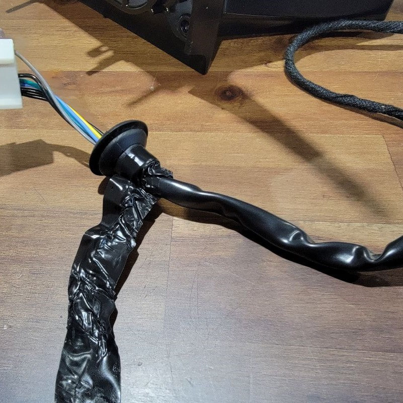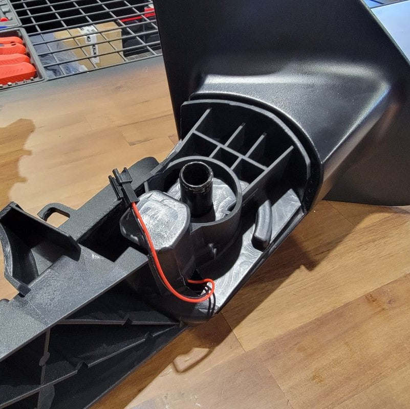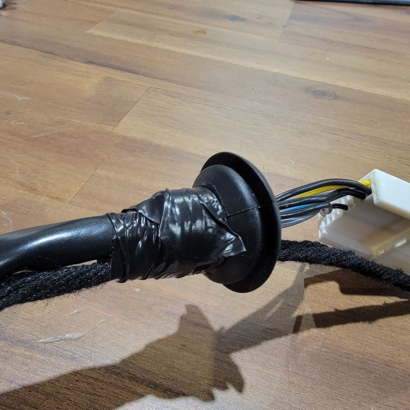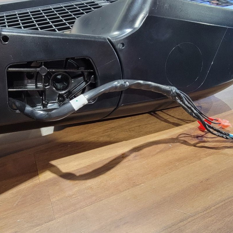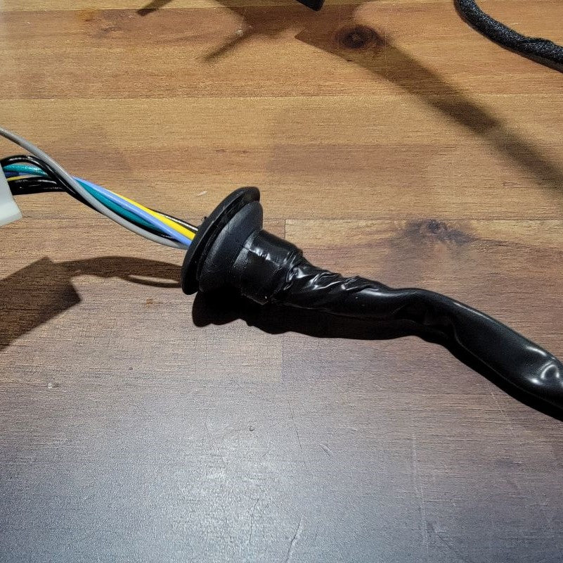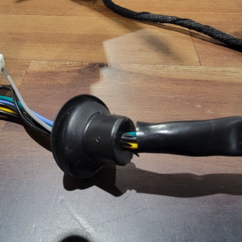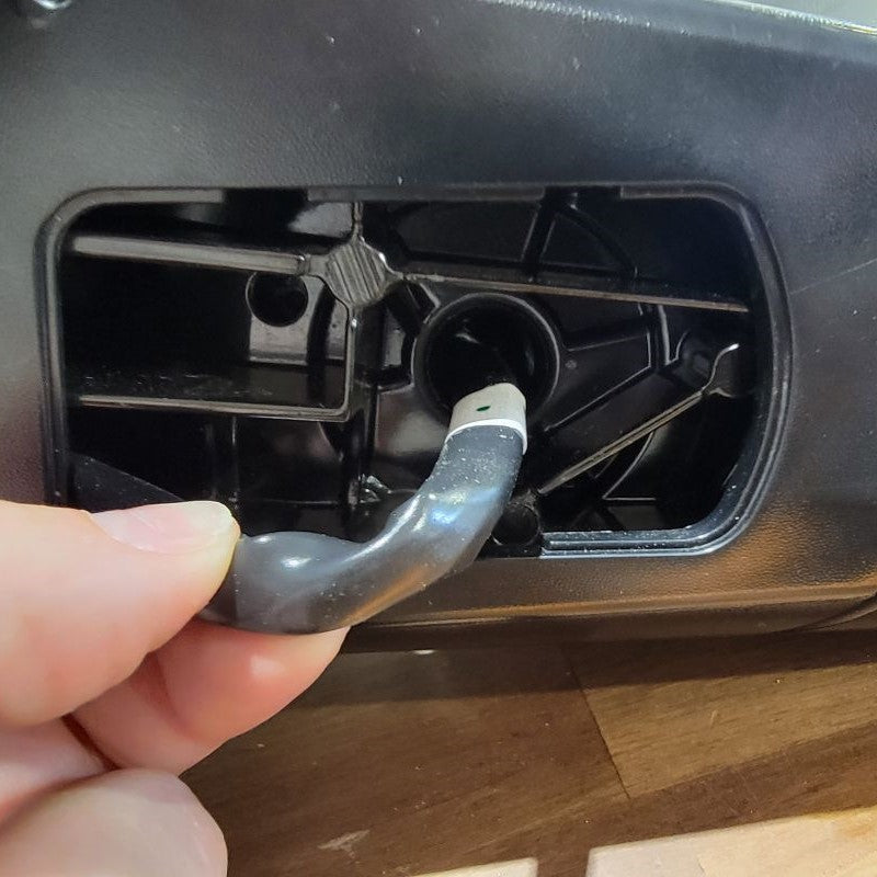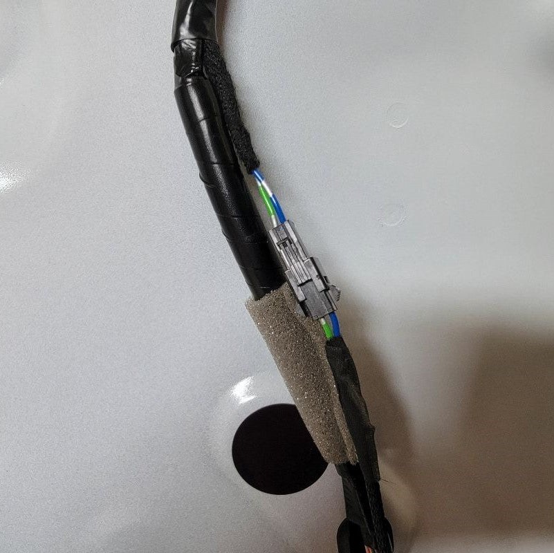 Now that we’re done pulling the cable through tight gaps, we can reassemble the two inner connectors into the outer housing and plug it back into the mirror receptacle. The power wires from the motor remain free.