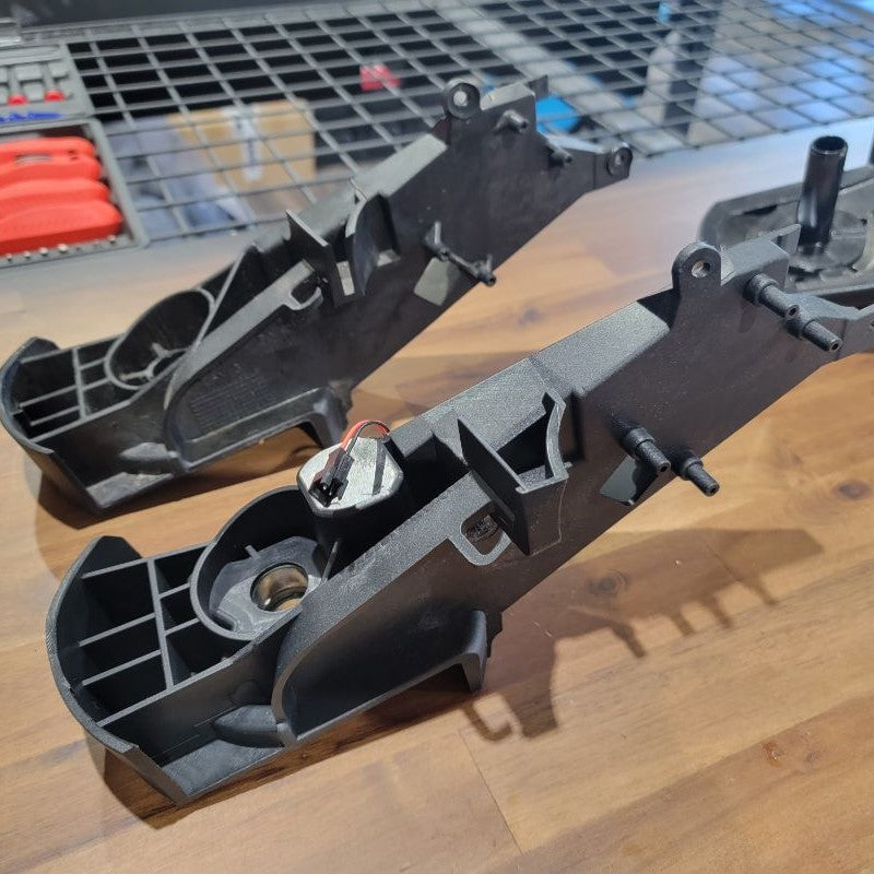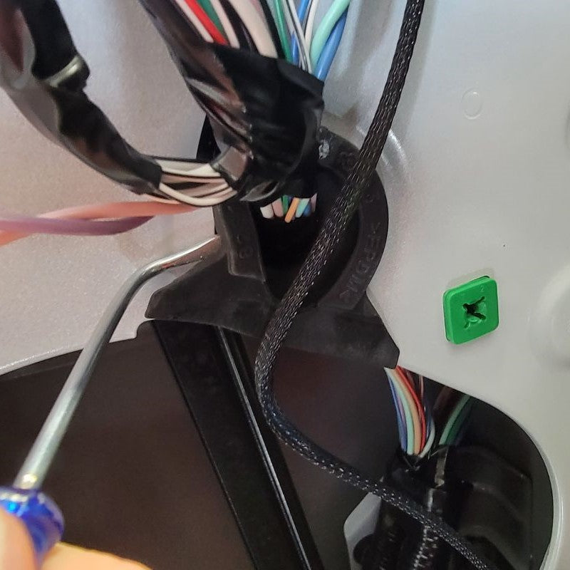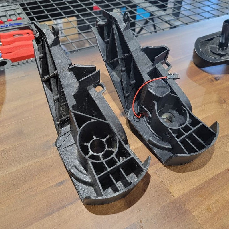 Tidy the wires up (including the two new wires from the motor) and route them back through the hole in the new arm bracket.