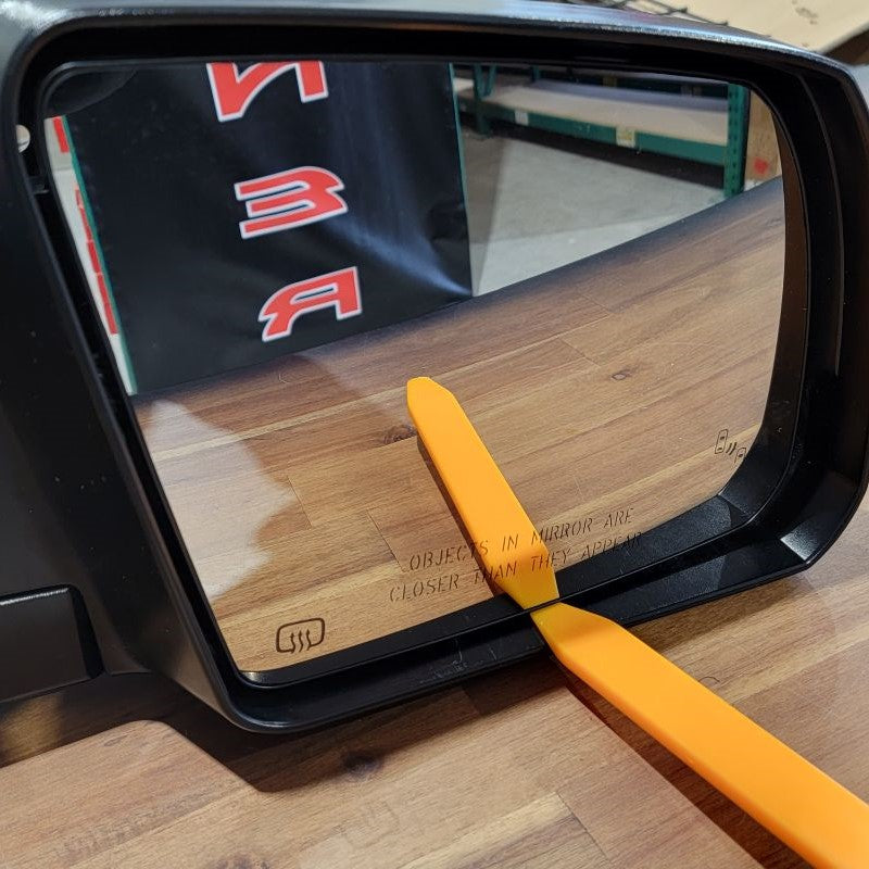 In order to remove your glass mirror from your assembly, depending on your OEM Mirror, you may need to grab your trim removal tool and put it on the bottom portion of the mirror and lift up. Some models you will need to just reach in on the top of the glass and pull it out.