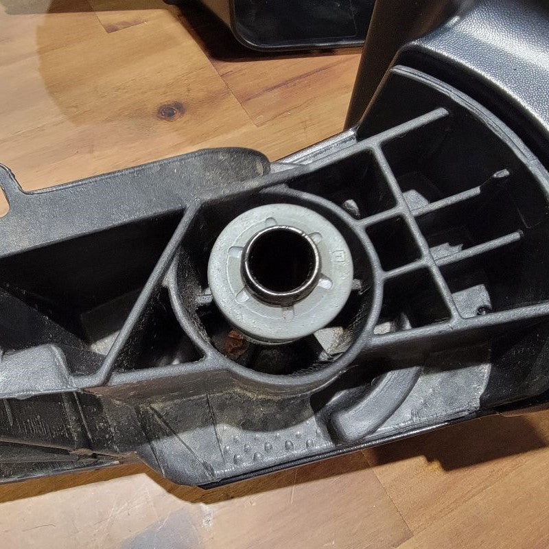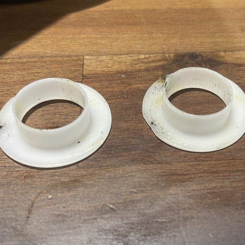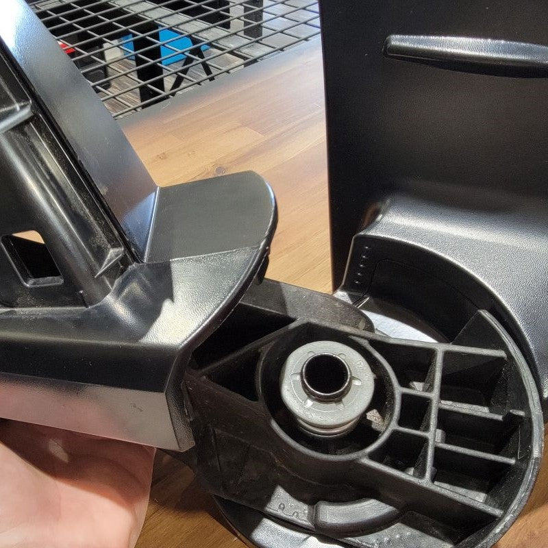 Reminder: If you kept the white plastic washer, this is where you will want to reinstall it on the new hinge that you see below.