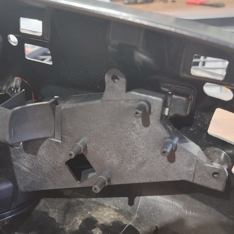 Remove the old connection arm plate and replace it with the new connection arm plate with motor. Here you will also use the new hardware to compress the spring back into place.
