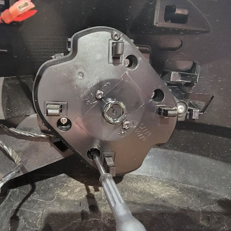 Next, using a T15 Torx Screwdriver, remove the 4 screws that are securing the directional actuator motor to the inner connection plate. Again, as you disassemble these parts, make notes if you need to for later. Set these parts aside for the end.