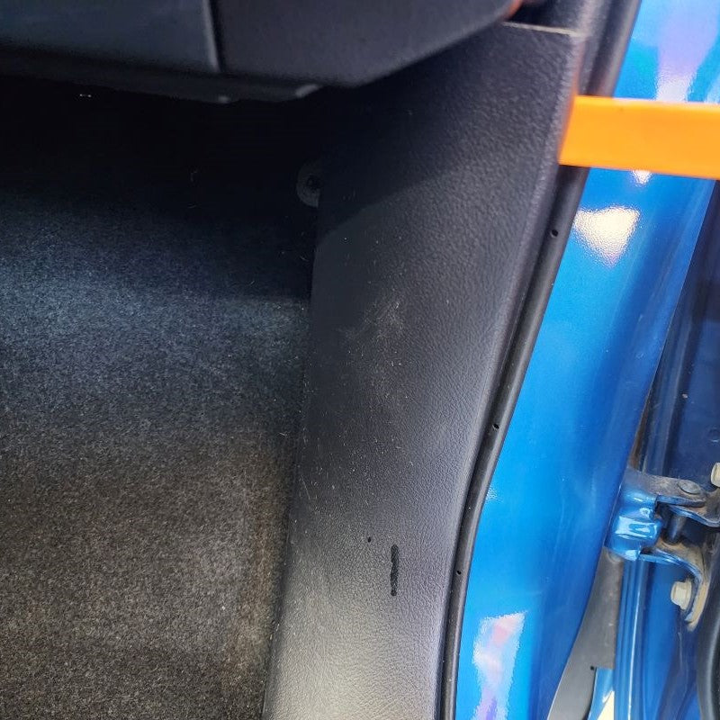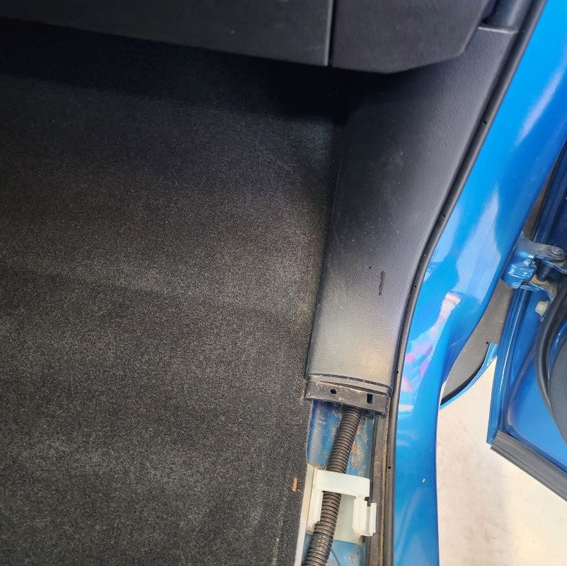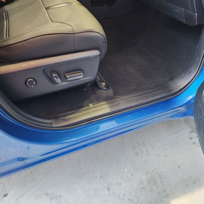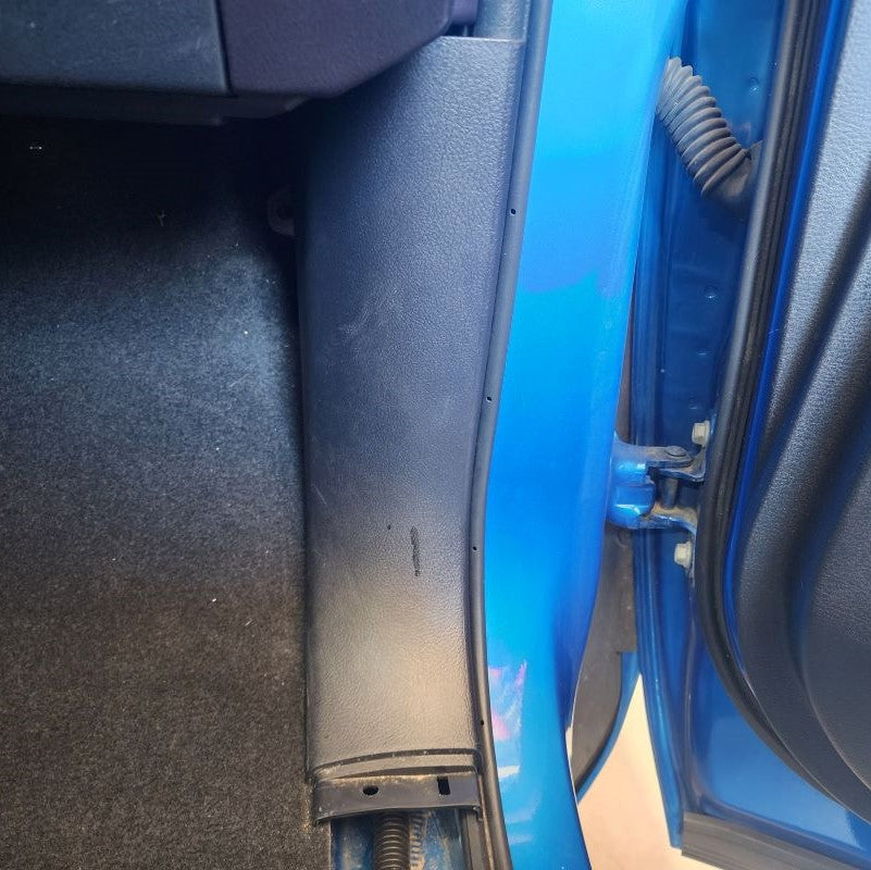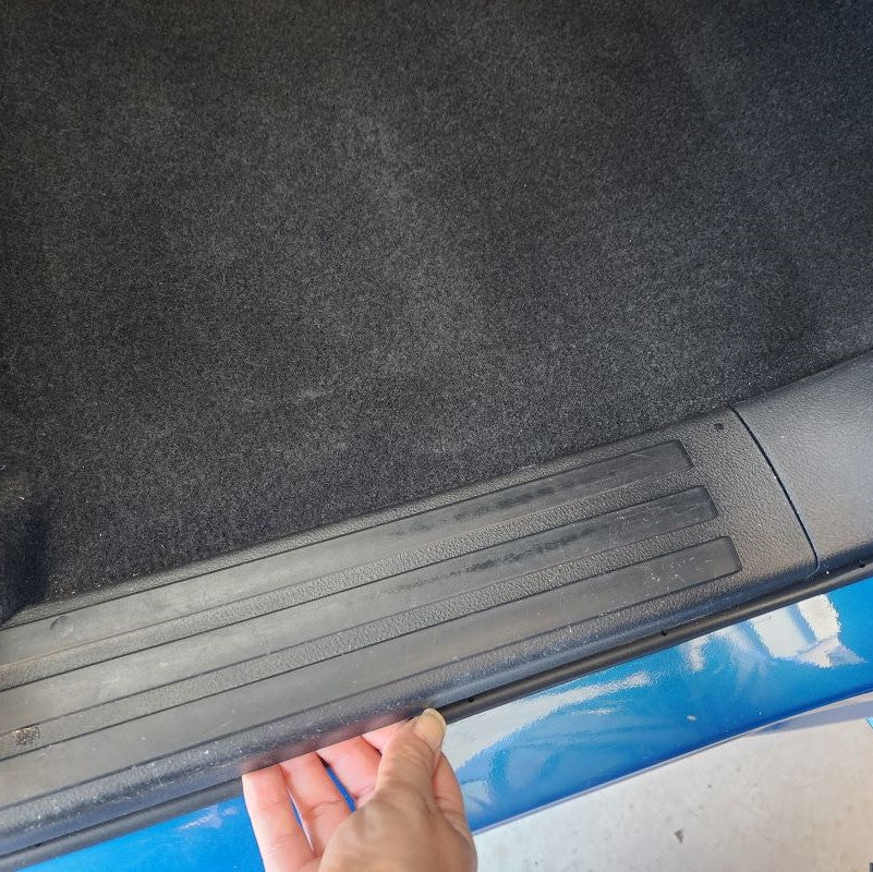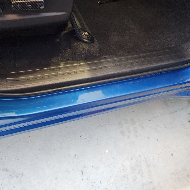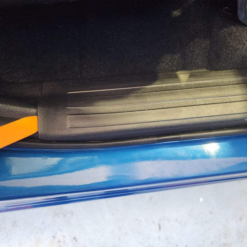 Last, re-install your door sill. Prior to pushing this panel down into place, just make sure all the tabs on the back side line up with their respectful locations. If not, you can damage the tabs and they will get bent. Also, your door sill will not be fastened down to the floor and remain loose.
